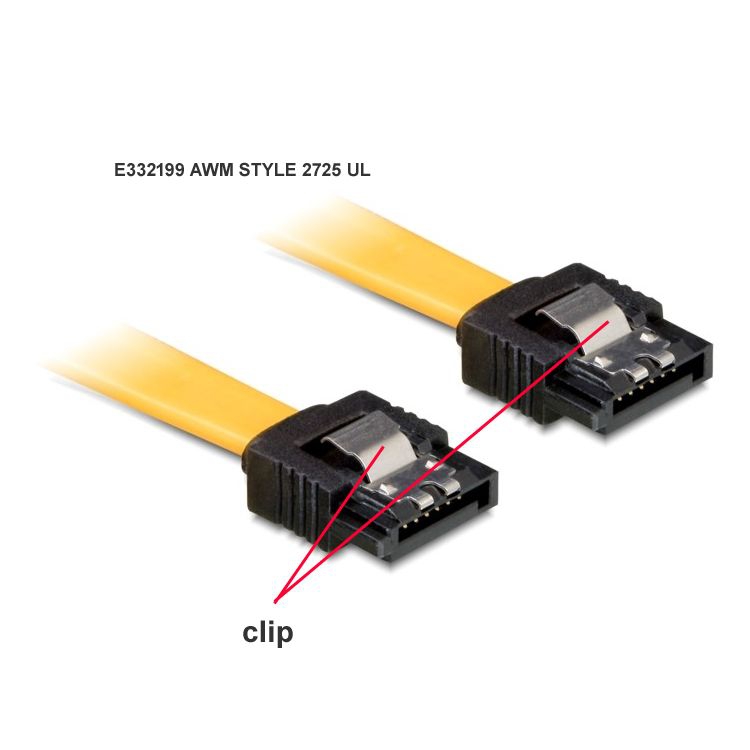 Beide SATA-Stecker sind mit einem Clip aus Metall ausgestattet. Dieser Clip sorgt für einen festen Halt des SATA-Steckers in der Buchse und somit für eine zuverlässige Datenverbindung.