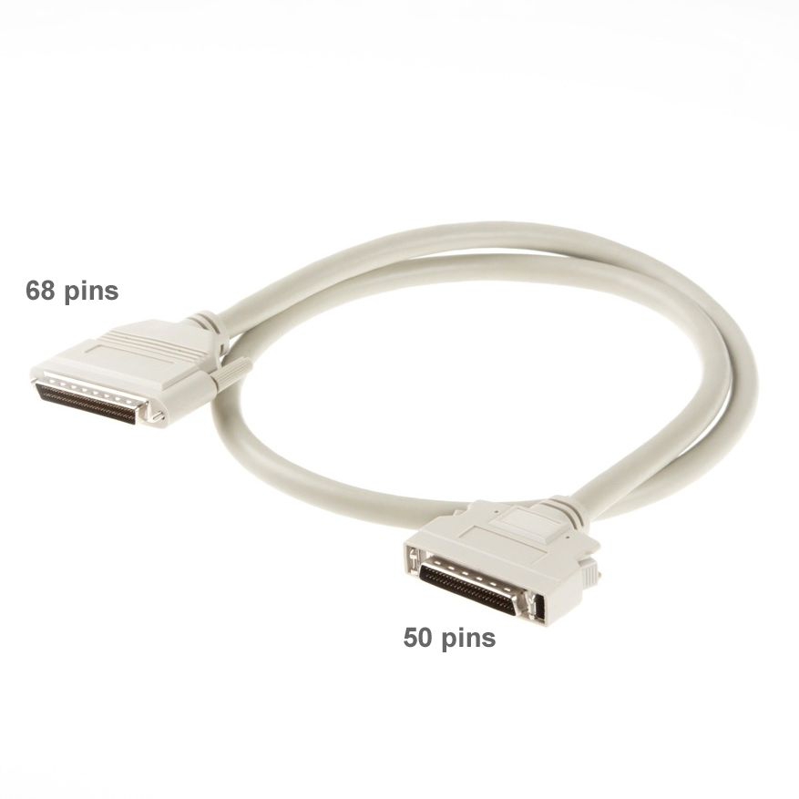Mit dem hier angebotenen Kabel kann z.B. ein SCSI-Scanner mit 50-poligem SCSI-II-Anschluss an einen WIDE-SCSI-Controller (z.B. ADAPTEC 2940UW) angeschlossen werden.