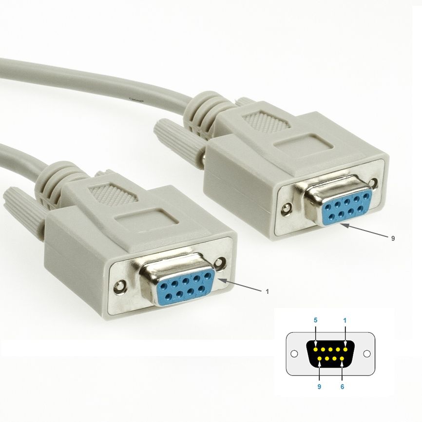 Das Kabel ist kein NULL-Modem-Kabel. Diese Spezialkabel mit spezieller Belegung haben wir allerdings ebenfalls im Programm, z.B. partsdata Art.-Nr. CNULL-100 (2m), CNULL-101 (3m) und CNULL-102 (5m).