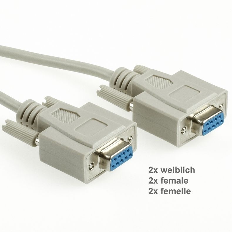 Das Kabel ist kein NULL-Modem-Kabel. Diese Spezialkabel mit spezieller Belegung haben wir allerdings ebenfalls im Programm, z.B. partsdata Art.-Nr. CNULL-100 (2m), CNULL-101 (3m) und CNULL-102 (5m).