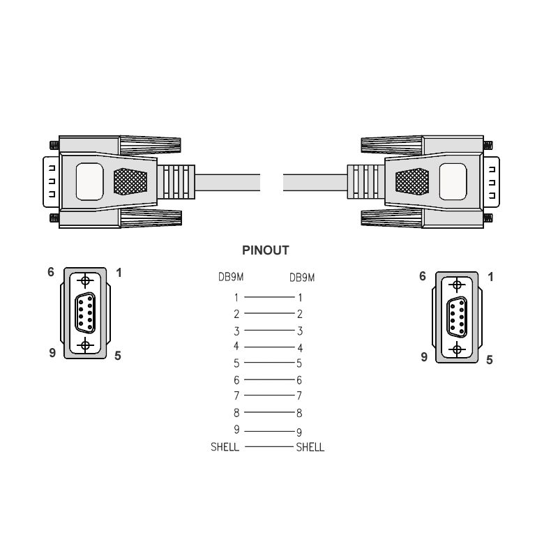 - beidseitig Stecker DSub-9 (DB9) mit 9 Kontakt-Stiften