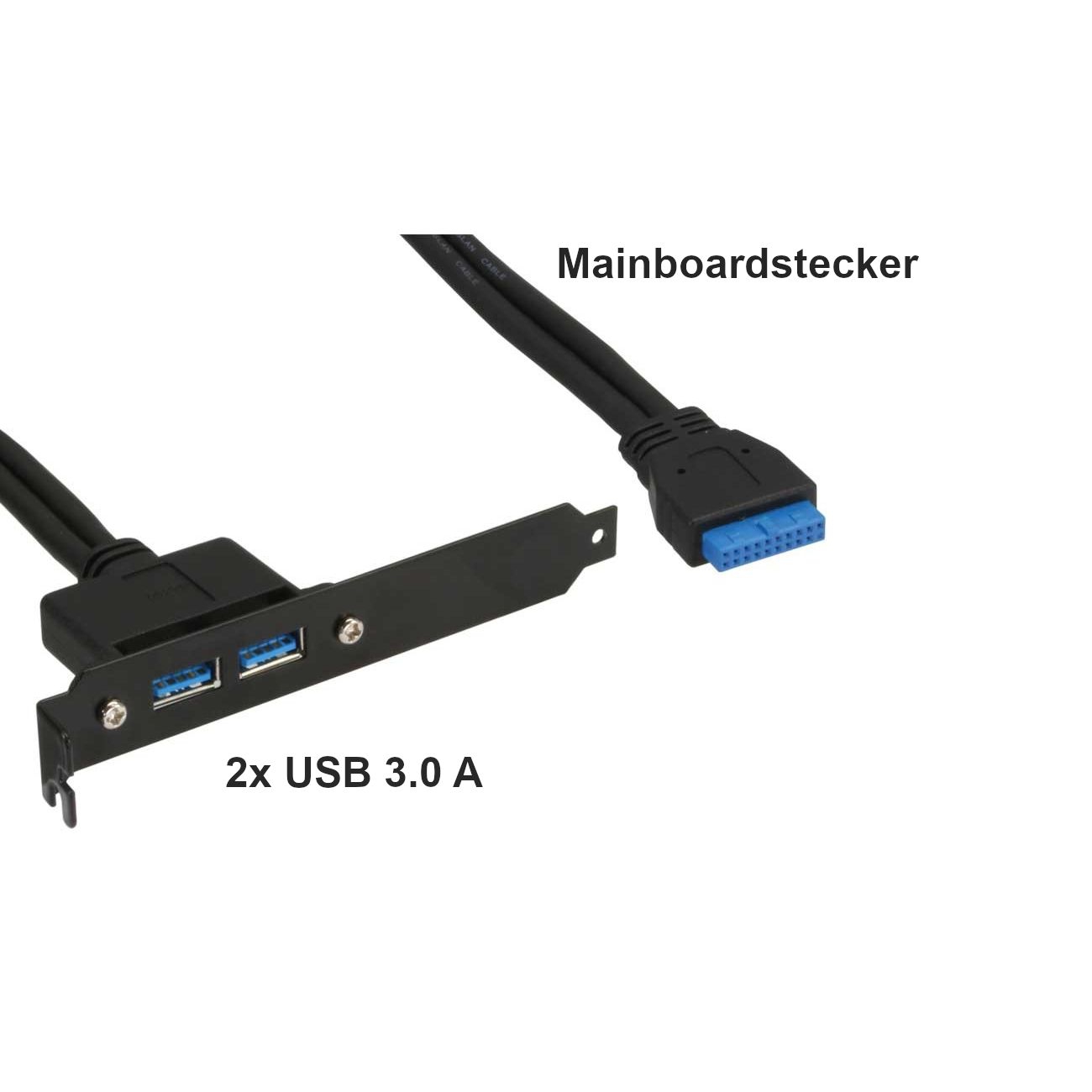 Slotblech USB 3.0 2x USB-A-Buchse auf Mainboardanschluss 50cm