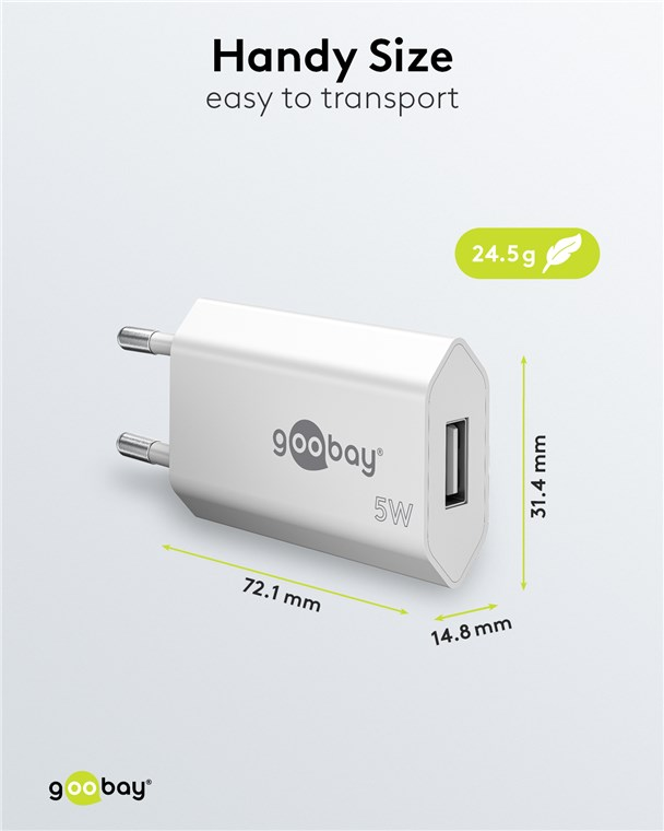 - Ladeadapter mit 1x USB-Anschluss, Typ A Buchse