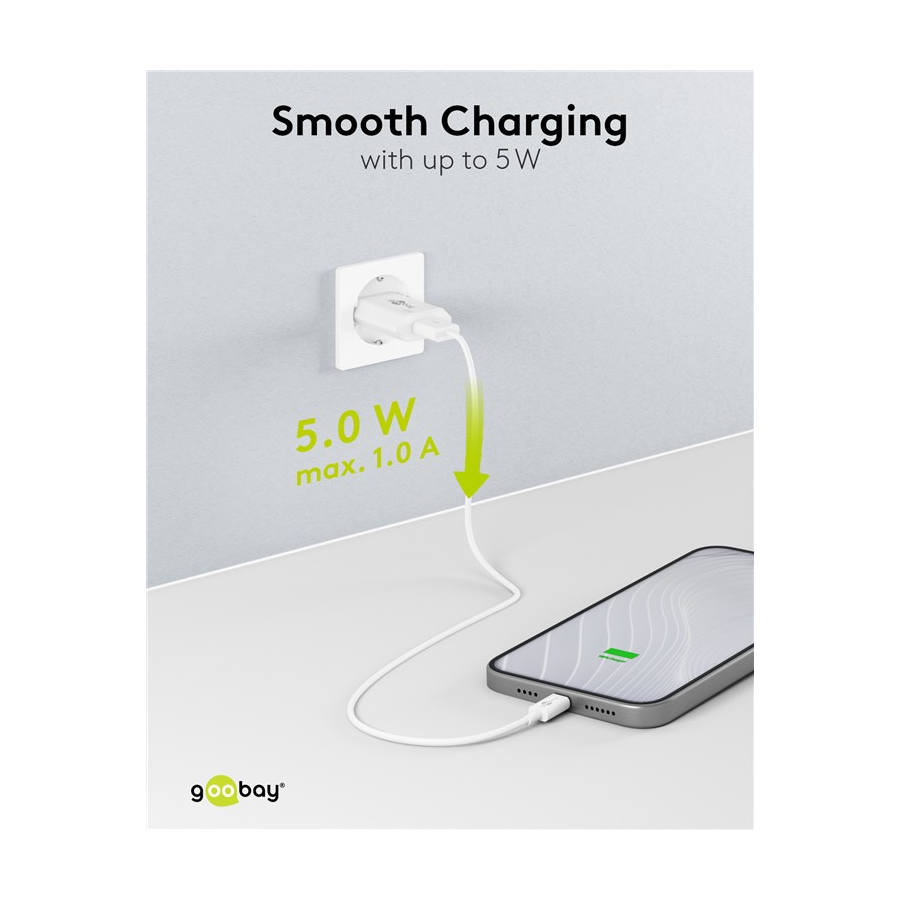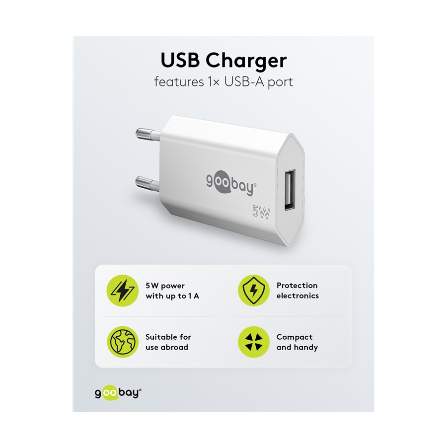 Produktinformationen "Steckernetzteil LADEGERÄT mit 1x USB-A-Port 5V 1000mA weiss"