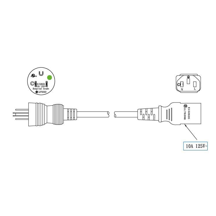 Die amerikanische UL Spezifikation 60601-1 legt ausdrücklich fest, dass alle patientenbezogenen Vorsorgegeräte mit Stromkabeln mit Hospital Grade Anschlussstecker versehen sein müssen.