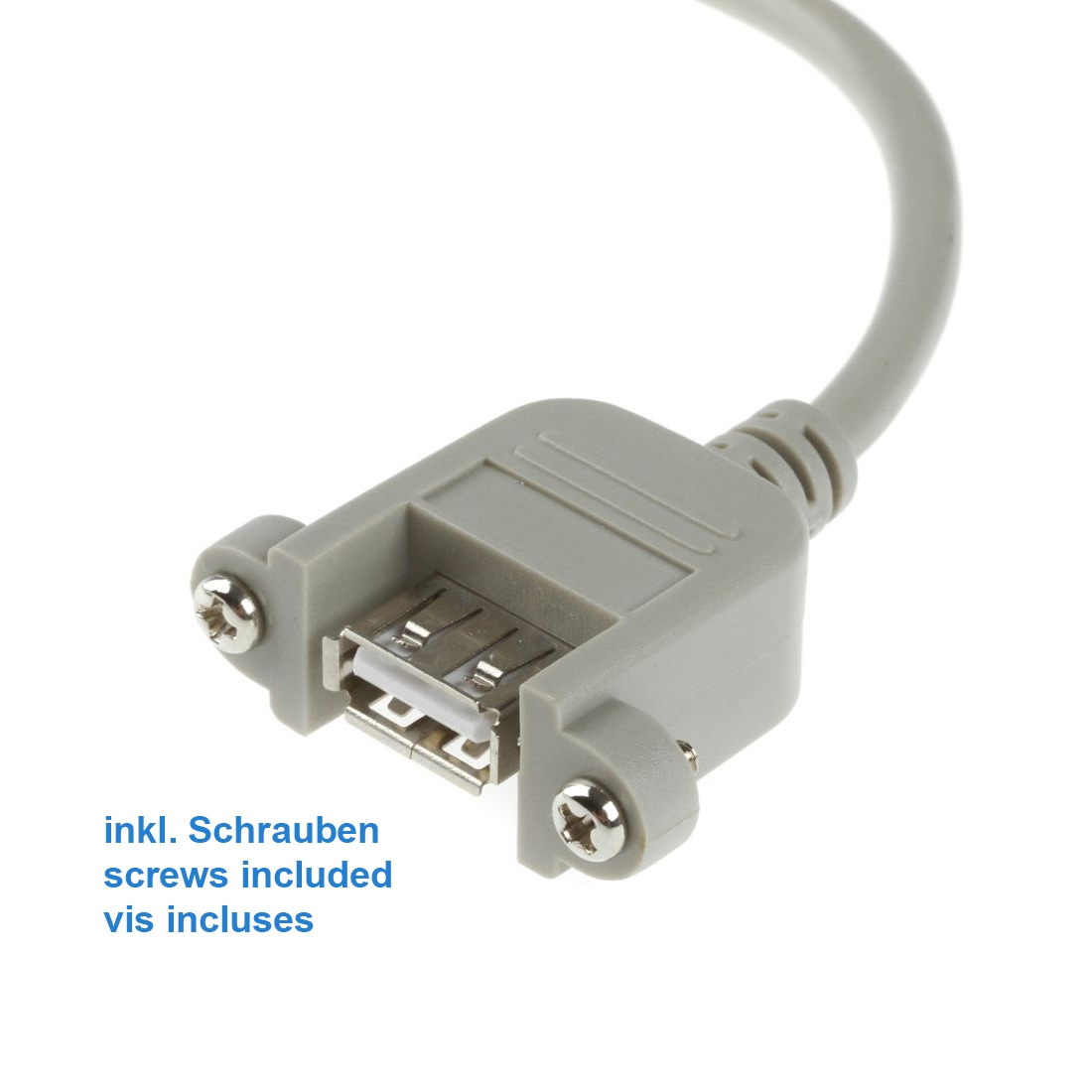 USB 2.0 A Buchse anschraubbar an 5-Pol Boardstecker, Kabel 25cm