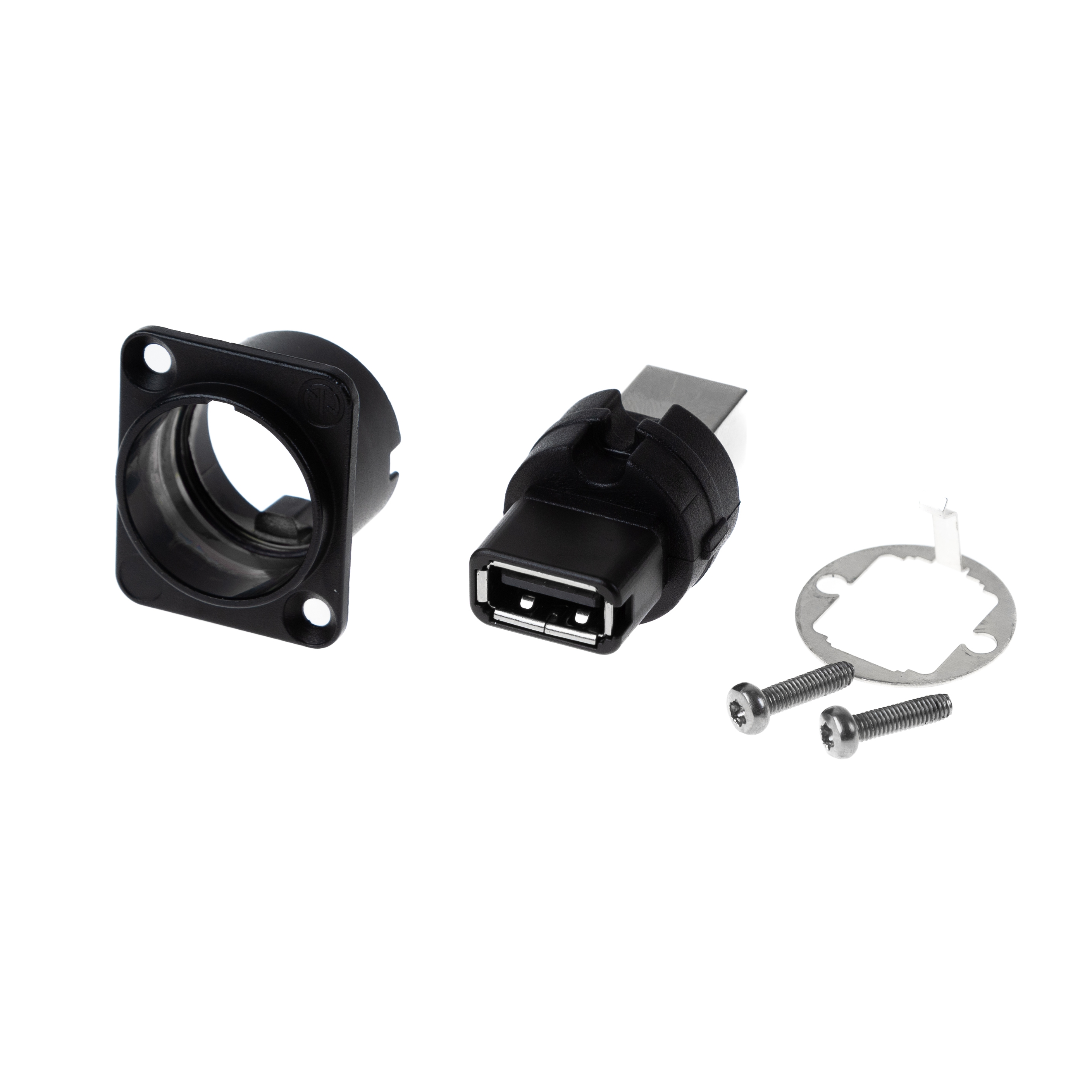 Produktinformationen "USB 2.0 Einbauadapter NEUTRIK Typ NAUSB-W-B, D-Gehäuse Metall, schwarz"