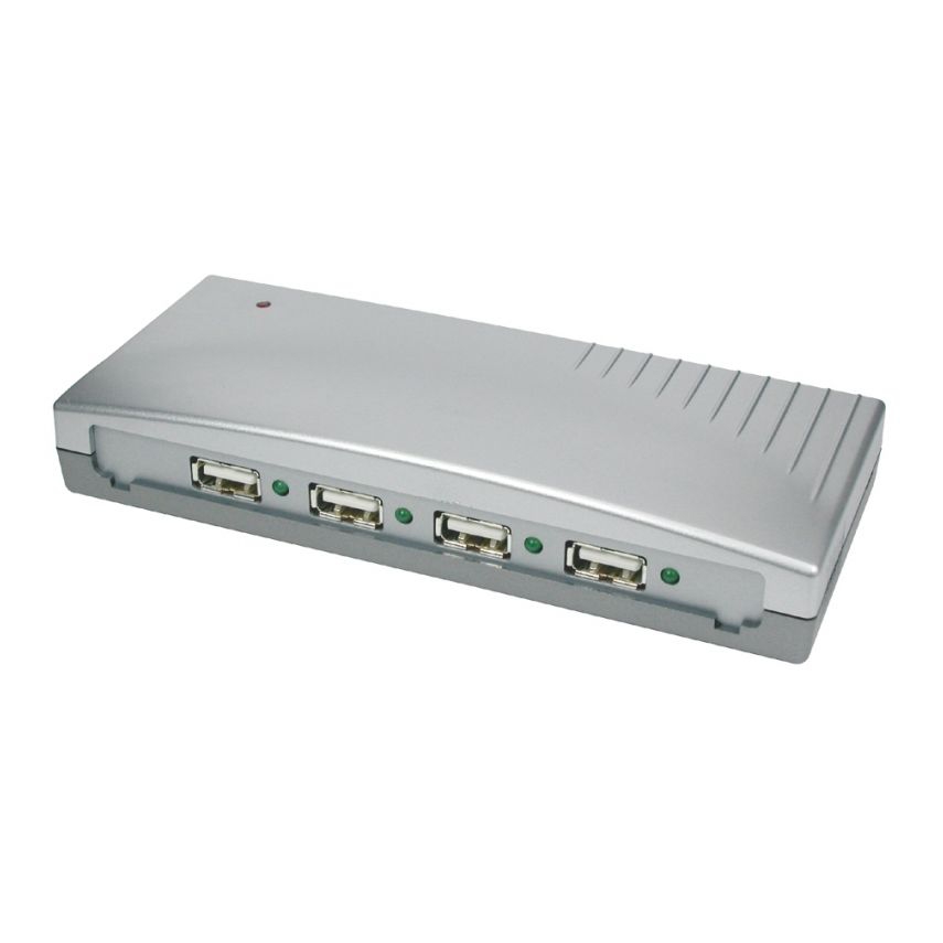 Eine Power-LED zeigt den Status des Hub an. Der Hub kann als Line-Extender eingesetzt werden. Hierfür empfehlen wir auf jeden Fall den Einsatz des mitgelieferten Netzteils, da bei langen USB-Kabeln viel Strom von der Versorgungsspannung verloren geht. Ein Kaskadierung der HUBs (Hintereinander-Schaltung) ist möglich, so dass maximal 127 Devices angeschlossen werden können.