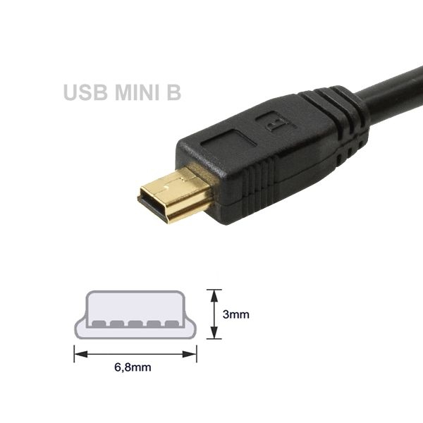 USB-Kabel vom Typ A auf MINI B dienen zum Anschluß von peripheren USB-Komponenten an den PC. Der Stecker Typ A wird am Computer eingesteckt ("upstream"). Der Stecker Typ MINI B ("downstream") ist die kleinere Anschlußvariante für meist ebenfalls kleine USB-Geräte oder USB-HUBs. Z.B. werden viele externe 2.5" oder 1.8" USB-2.0-Festplatten mit einem USB MINI B Kabel angeschlossen (z.B. von Samsung). Auch viele professionelle Digitalkameras, Webcams oder USB-Kartenleser haben den Mini-B-Anschluß.