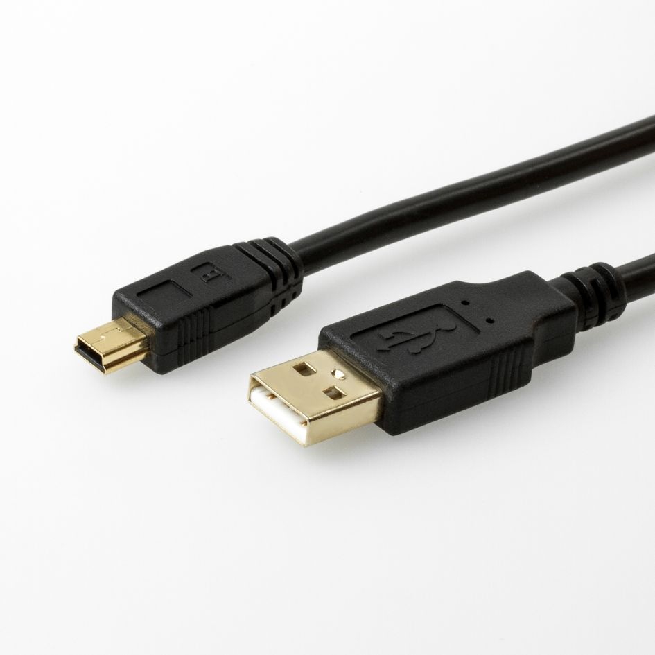 USB-Kabel Mini-B mit 2 Ferritkernen, 1m, Qualität PREMIUM+, vergoldete Stecker, USB-A männlich an USB Mini-B männlich (5-polig), Farbe: schwarz