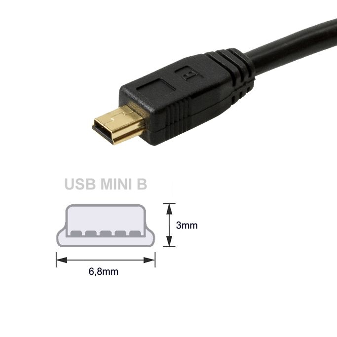 USB-Kabel vom Typ A auf MINI B dienen zum Anschluß von peripheren USB-Komponenten an den PC. Der Stecker Typ A wird am Computer eingesteckt ("upstream"). Der Stecker Typ MINI B ("downstream") ist die kleinere Anschlußvariante für meist ebenfalls kleine USB-Geräte oder USB-HUBs. Z.B. werden viele externe 2.5" oder 1.8" USB-2.0-Festplatten mit einem USB MINI B Kabel angeschlossen (z.B. von Samsung). Auch viele professionelle Digitalkameras, Webcams oder USB-Kartenleser haben den Mini-B-Anschluß.