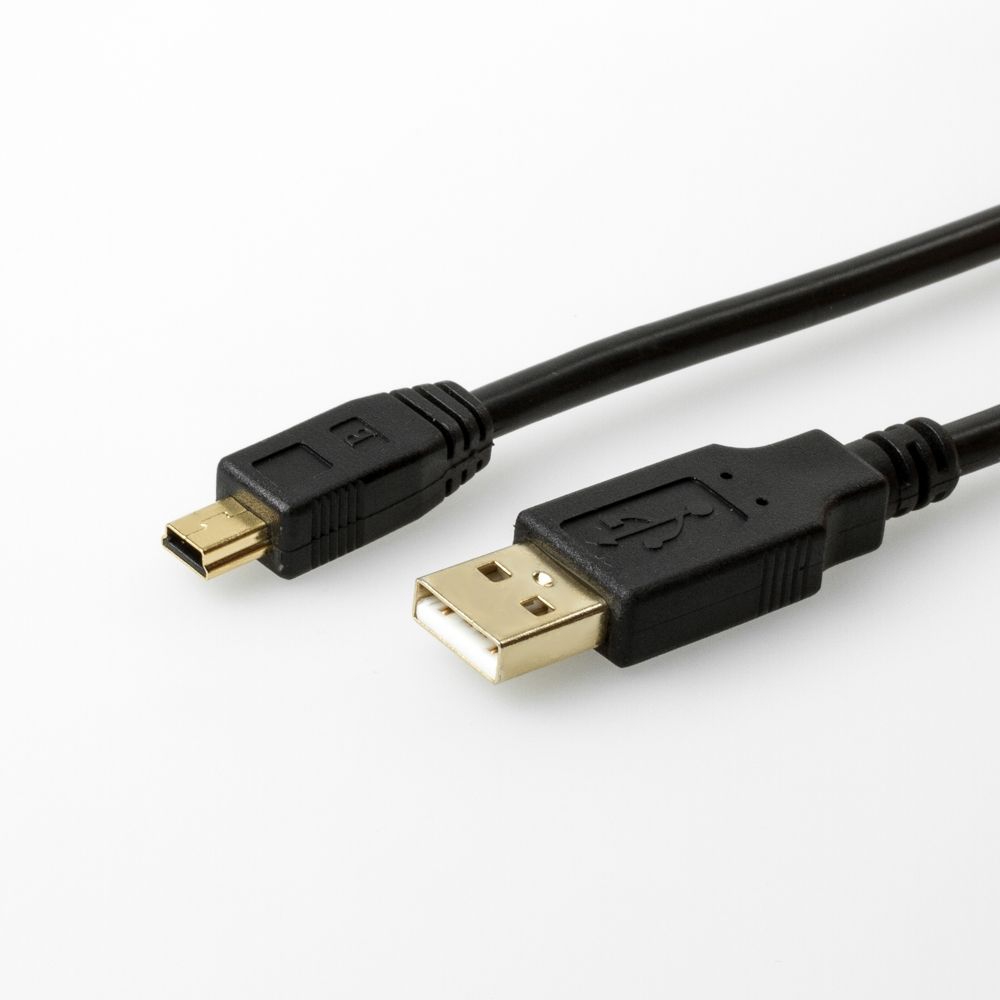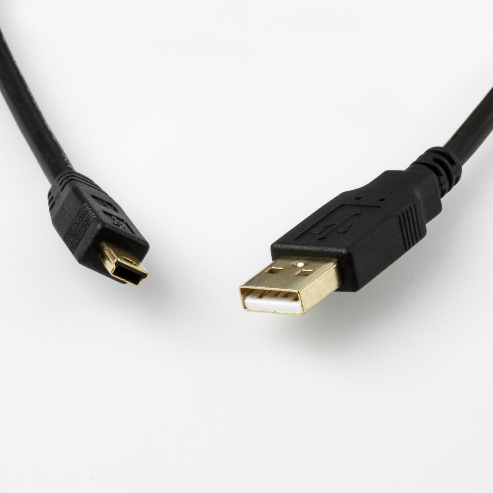 USB-Kabel Mini-B mit 2 Ferritkernen, 5m, Qualität PREMIUM+, vergoldete Stecker, USB-A männlich an USB Mini-B männlich (5-polig), Farbe: schwarz