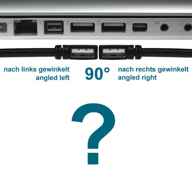 - Anschluss 1: USB 2.0 A Stecker NACH RECHTS abgewinkelt