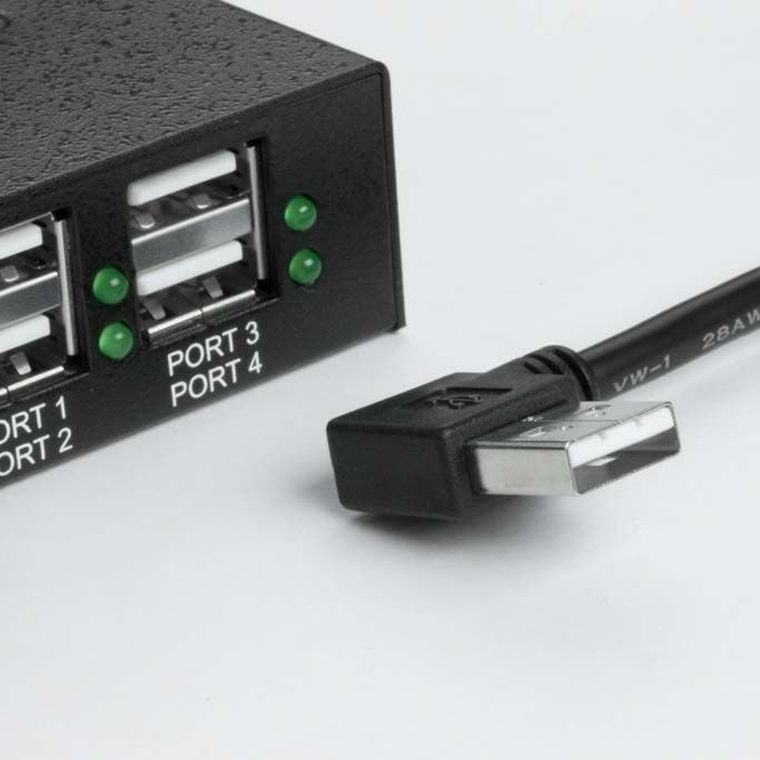 Das hier angebotene USB-Kabel hat einen um 90° abgewinkelten USB-Stecker Typ A. Dadurch eignet sich das Kabel besonders für den platzsparenden Anschluss am PC oder Notebook. Der Stecker-Überstand beträgt nur ca. 15mm. Hierfür haben wir extra ein spezielles Tooling anfertigen lassen.