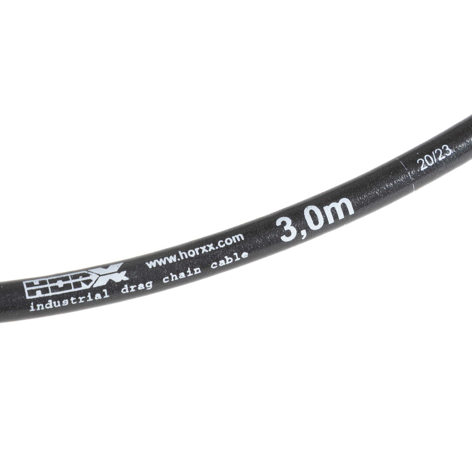 Der Außenmantel des flexiblen Kabels besteht aus abrieb-, kerb- und schnittfestem TMPU (thermoplastisches Polyurethan / PUR). Der optimale Biegeradius beträgt beim Einsatz in einer Schleppkette das 10-fache des Kabeldurchmessers (6,15 +/- 0,15mm). Der Temperaturbereich des Kabels liegt bewegt bei -5°C bis +50°C.