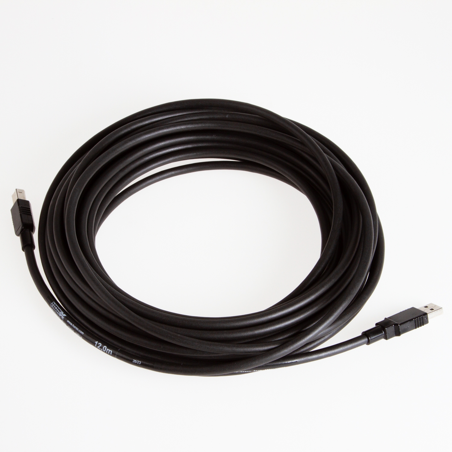 USB 2.0 Kabel AB mit PUR-Kabelmaterial, 12m, für Industrieanwendungen u. Schleppkette, erhöht abrieb-, kerb- u. schnittfest, hydrolyse- u. ölbeständig, 4x AWG22, halogenfrei, USB-A-Stecker auf USB-B-Stecker, Schleppkette (r=65mm bei RT) > 3.000.000 Zyklen, Made in Germany, Farbe: schwarz