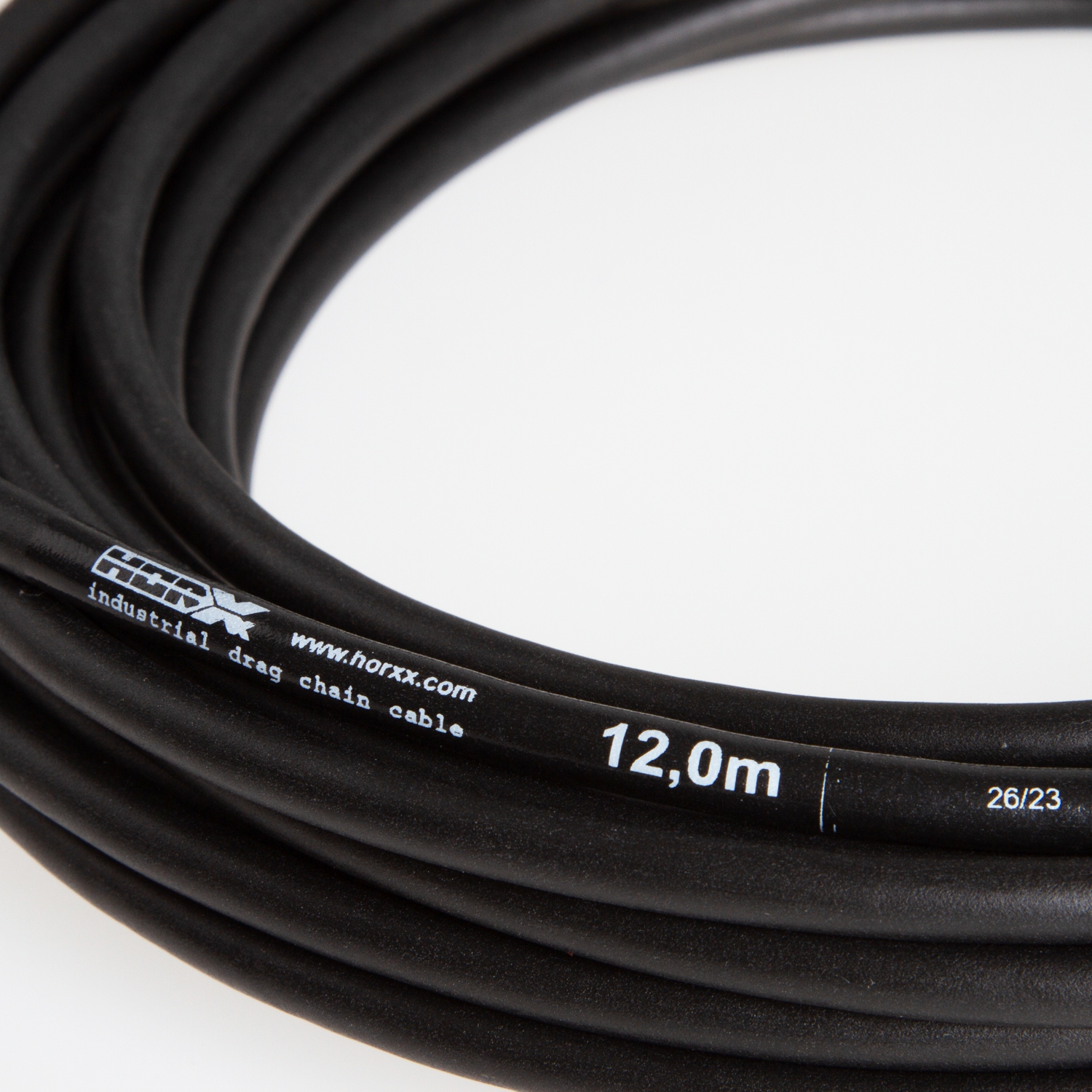 Der Außenmantel des flexiblen Kabels besteht aus abrieb-, kerb- und schnittfestem TMPU (thermoplastisches Polyurethan / PUR). Der optimale Biegeradius beträgt beim Einsatz in einer Schleppkette das 10-fache des Kabeldurchmessers (6,15 +/- 0,15mm). Der Temperaturbereich des Kabels liegt bewegt bei -5°C bis +50°C.