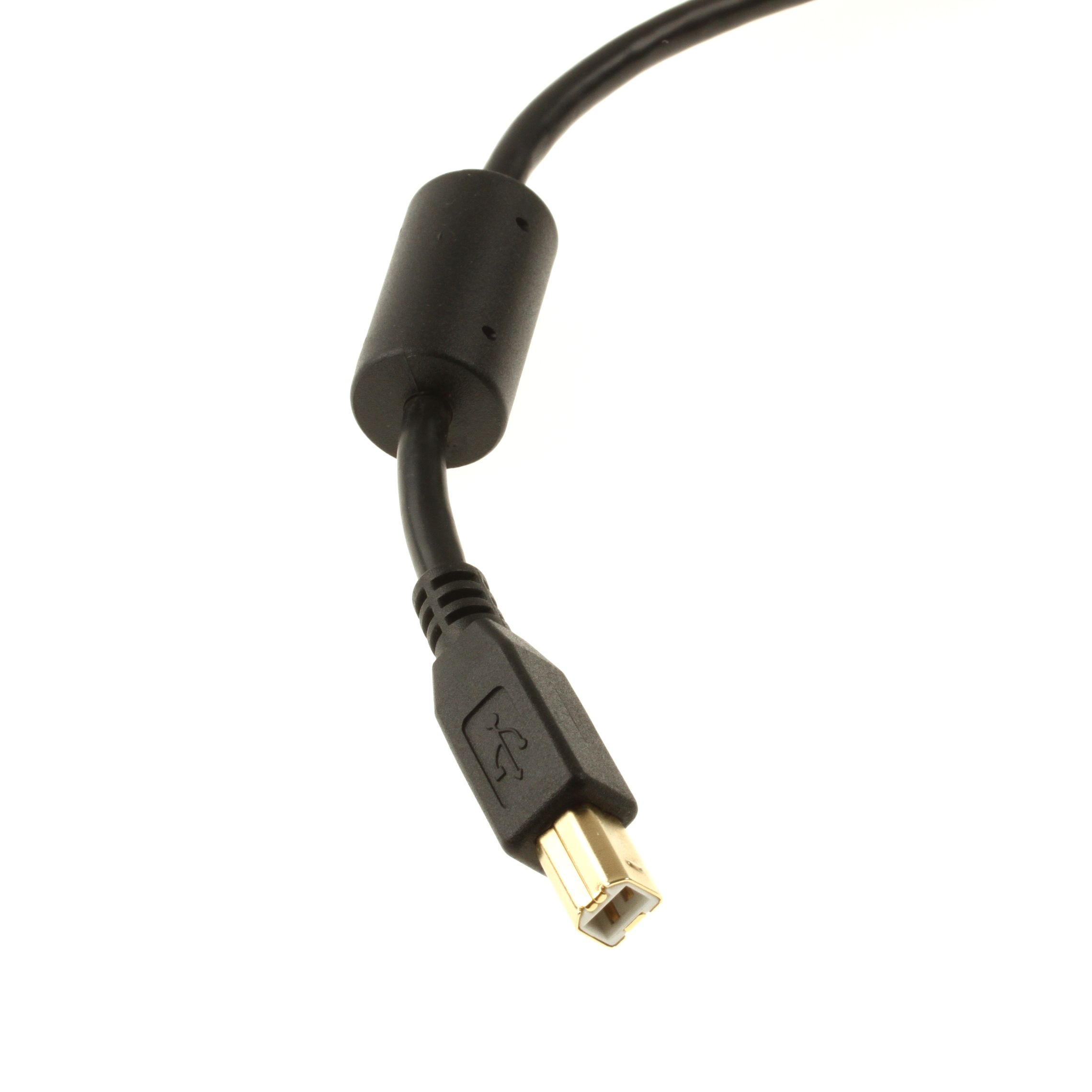 USB-Kabel 50cm, USB 2.0, Qualität PREMIUM+ (für industrielle Nutzung): 2 Ferritkerne, dickere Kupferadern 26AWG/1P 20AWG/2C, 30µm vergoldete Stecker (A/B), doppelte Abschirmung Folie u. Geflechtschirm (85% Abdeckung), schwarz
