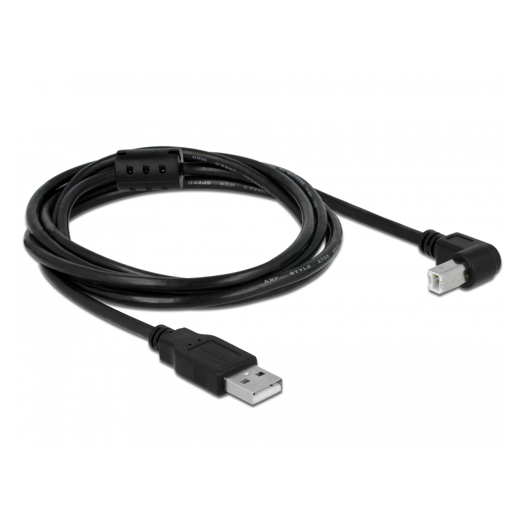 USB 2.0 Kabel mit B-Winkelstecker (90° NACH UNTEN) und Ferritkern 2m