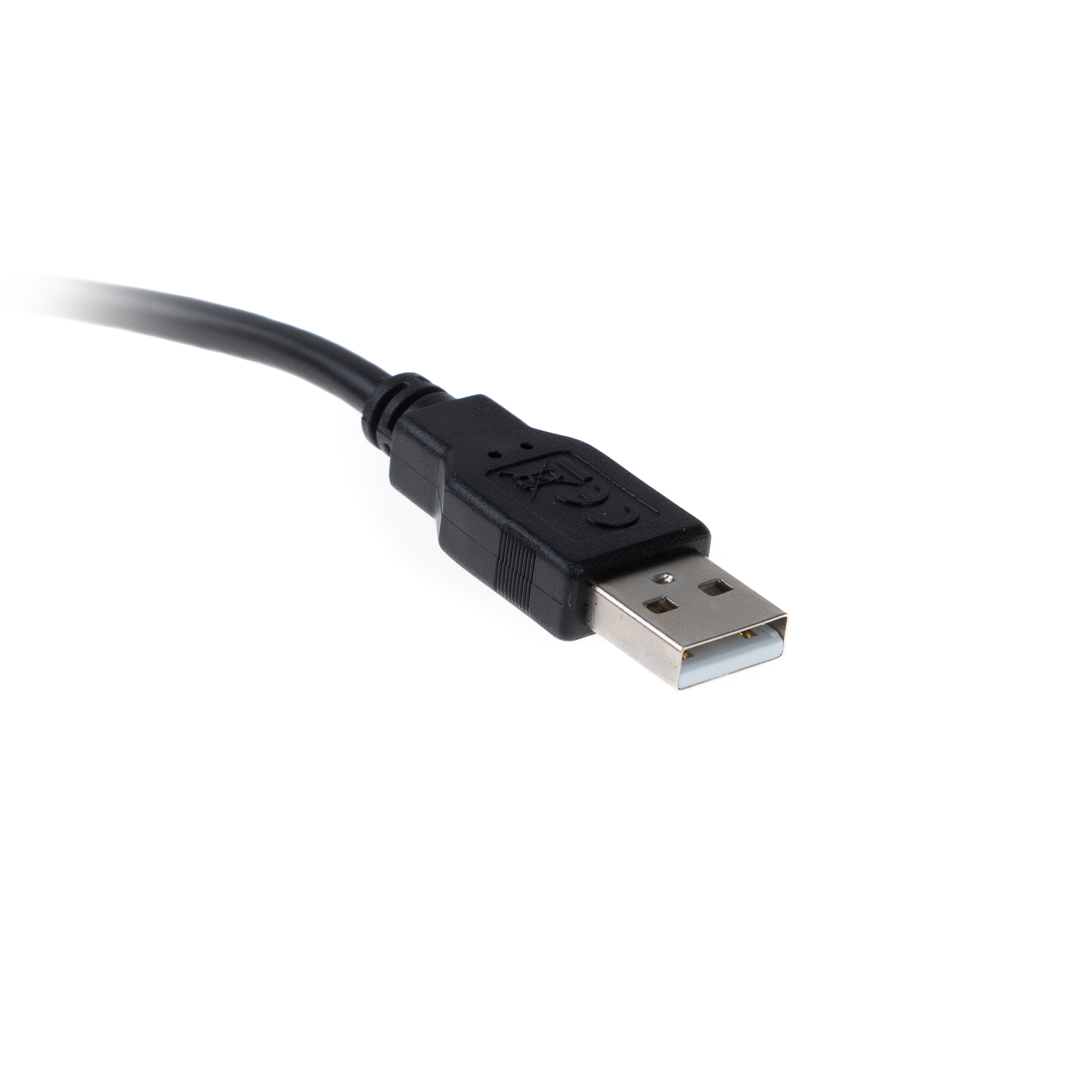 Das USB 2.0 Kabel hat einen um 90° abgewinkelten USB-Stecker Typ B für den platzsparenden Anschluss von USB-Einheiten.