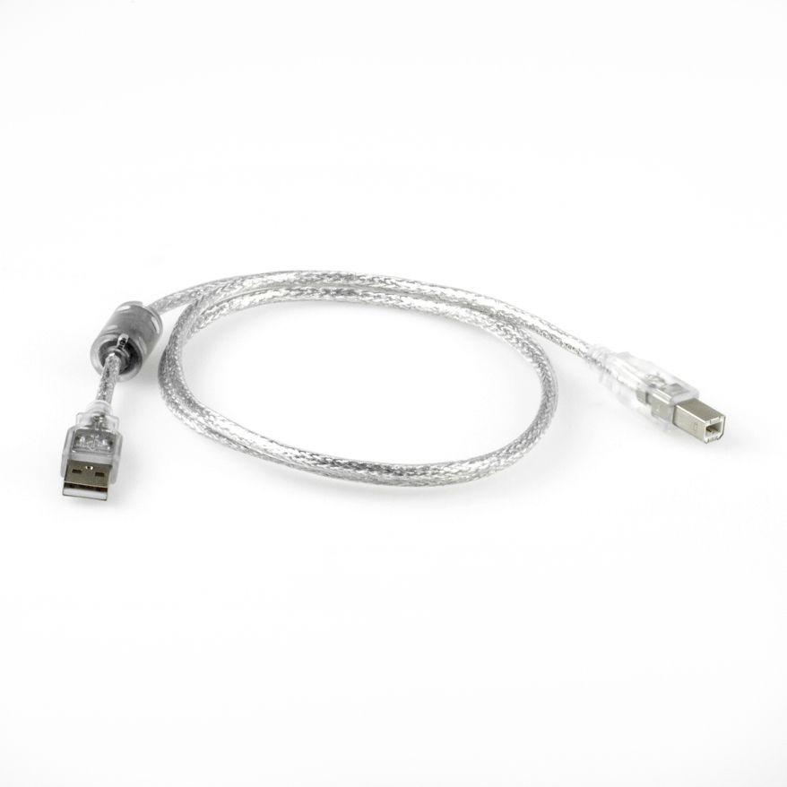 USB-Kabel 1m, Premium-Qualität: 1x Ferritkern, 28AWG/24AWG, doppelt geschirmt (65% Abdeckung), für USB 2.0 High Speed 480MBit/s, Farbe: silber-transparent