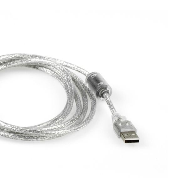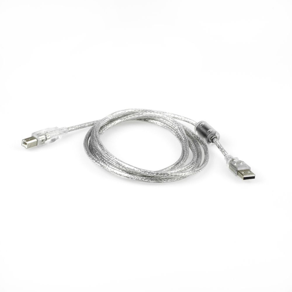 USB-Kabel 2m, Premium-Qualität: 1x Ferritkern, 28AWG/24AWG, doppelt geschirmt (65% Abdeckung), für USB 2.0 High Speed 480MBit/s, Farbe: silber-transparent