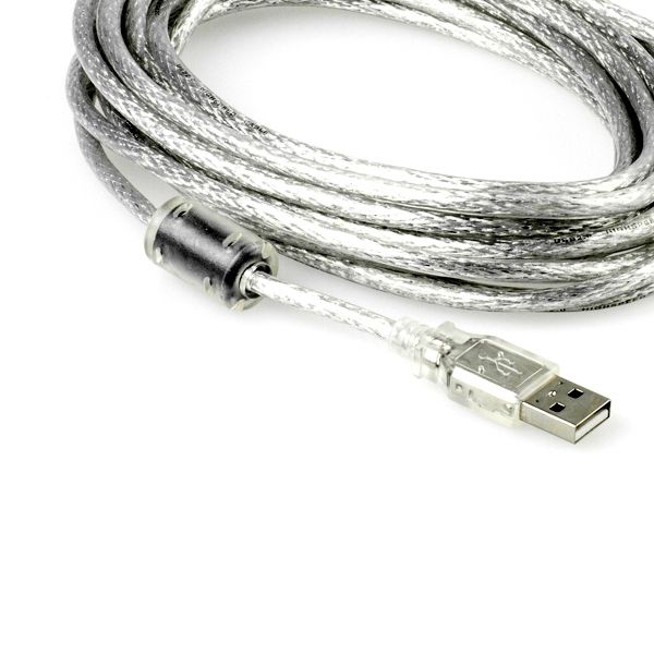 USB-Kabel 3m, Premium-Qualität: 1x Ferritkern, 28AWG/24AWG, doppelt geschirmt (65% Abdeckung), für USB 2.0 High Speed 480MBit/s, Farbe: silber-transparent