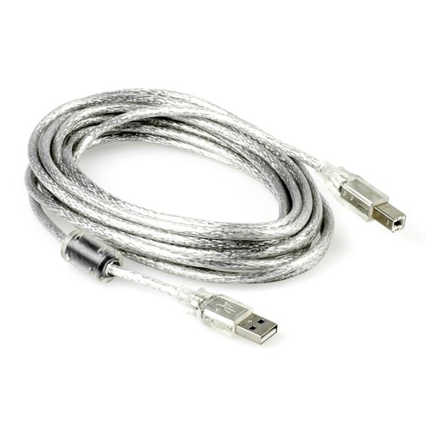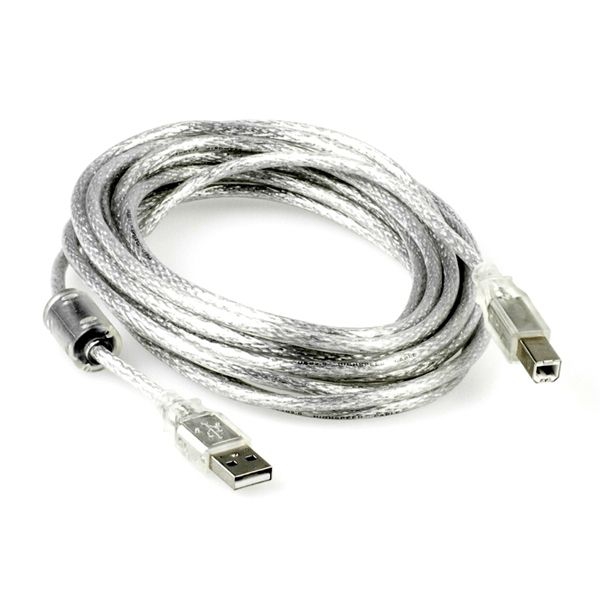 USB-Kabel 5m, Premium-Qualität: 1x Ferritkern, 28AWG/24AWG, doppelt geschirmt (65% Abdeckung), für USB 2.0 High Speed 480MBit/s, Farbe: silber-transparent