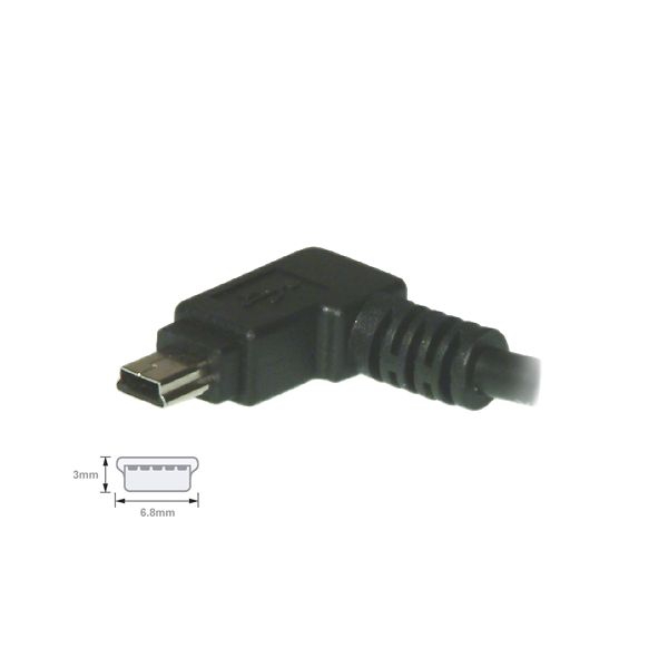 Das hier angebotene spezielle USB 2.0 Kabel hat einen um 90° abgewinkelten Mini B Stecker. Dadurch eignet sich diese Kabel insbesondere für den platzsparenden Anschluss von USB-Geräten, z.B. Kameras.
