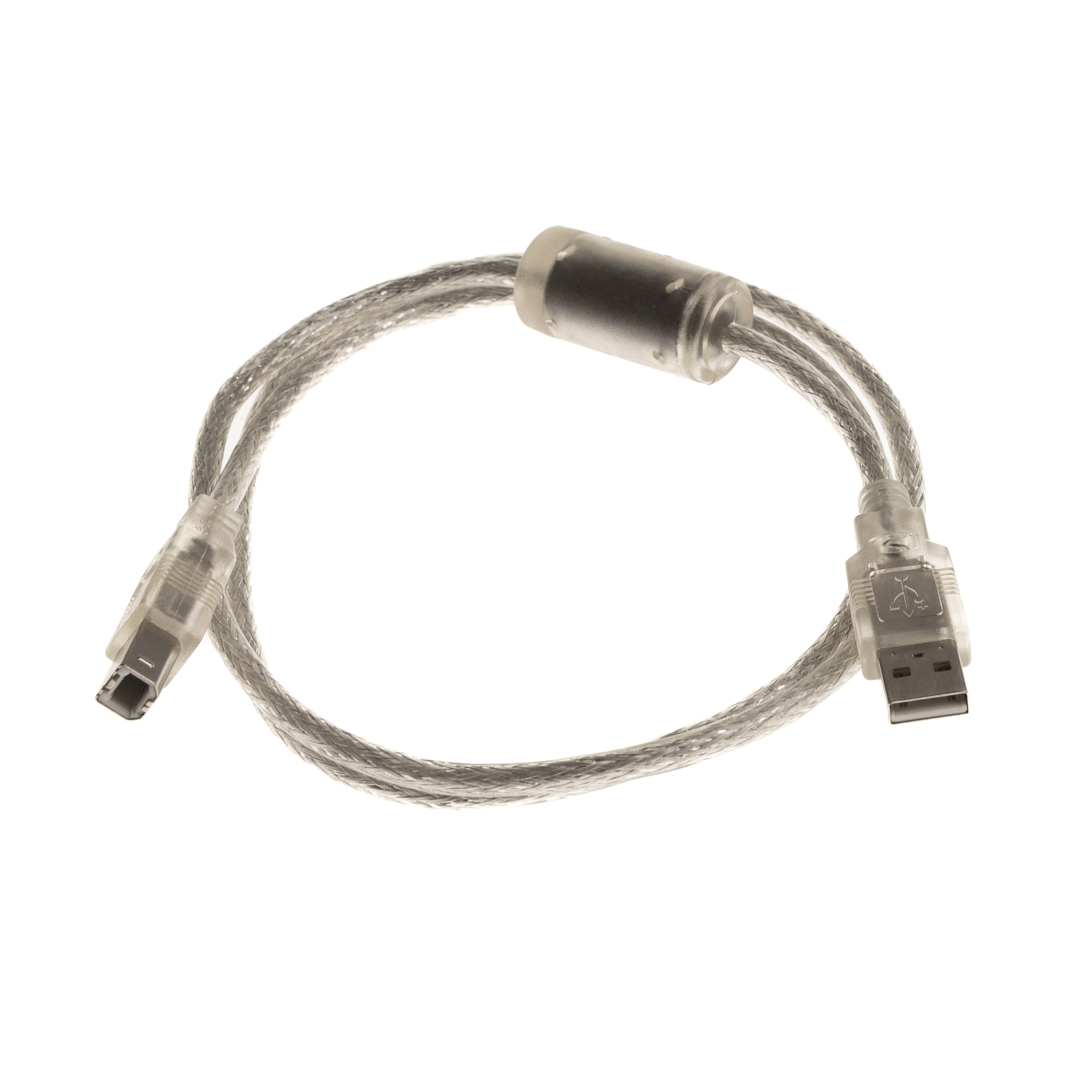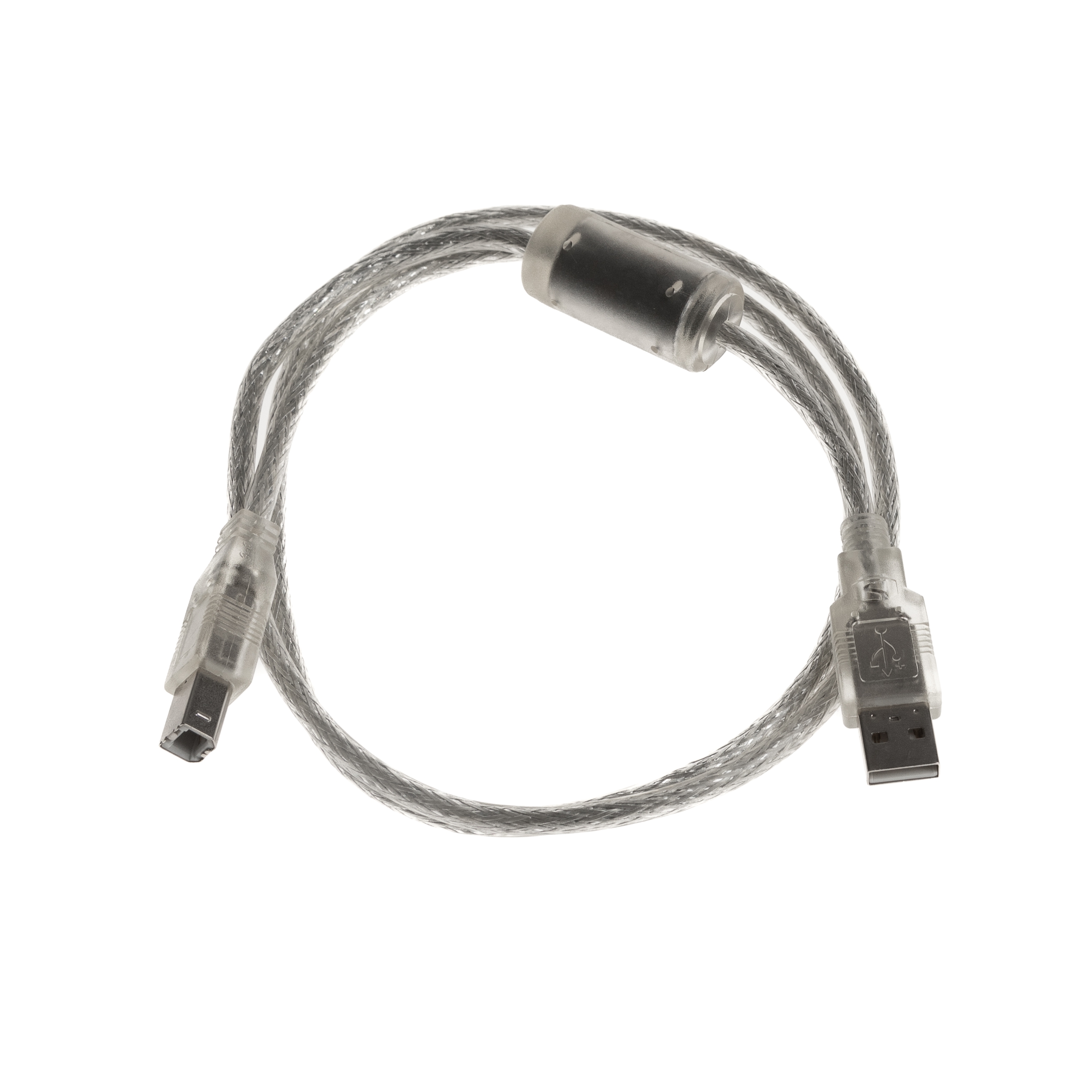 USB-Kabel 1m, Premium-Qualität: 1x dicker Ferritkern, 28AWG/24AWG, doppelt geschirmt (65% Abdeckung), für USB 2.0 High Speed 480MBit/s, Farbe: silber-transparent