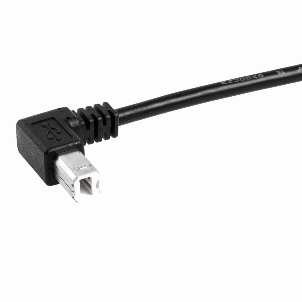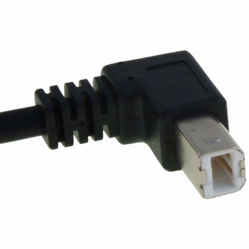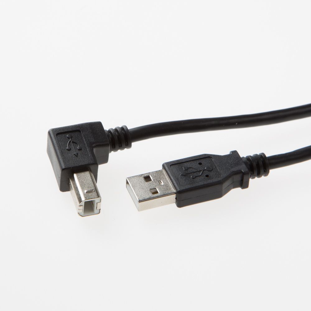 Das hier angebotene USB-Kabel hat einen um 90° abgewinkelten USB-Stecker Typ B. Dadurch eignet sich das Kabel besonders für den platzsparenden Anschluss von USB-Einheiten.