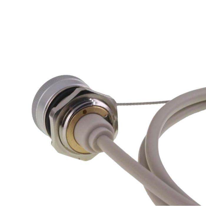 Der schraubbare Metall-Schutzdeckel ist mit einem ca. 10cm langen Drahtseil ausgestattet. Die Metallöse dient der Befestigung, so dass der Schutzdeckel nicht verlegt werden kann.