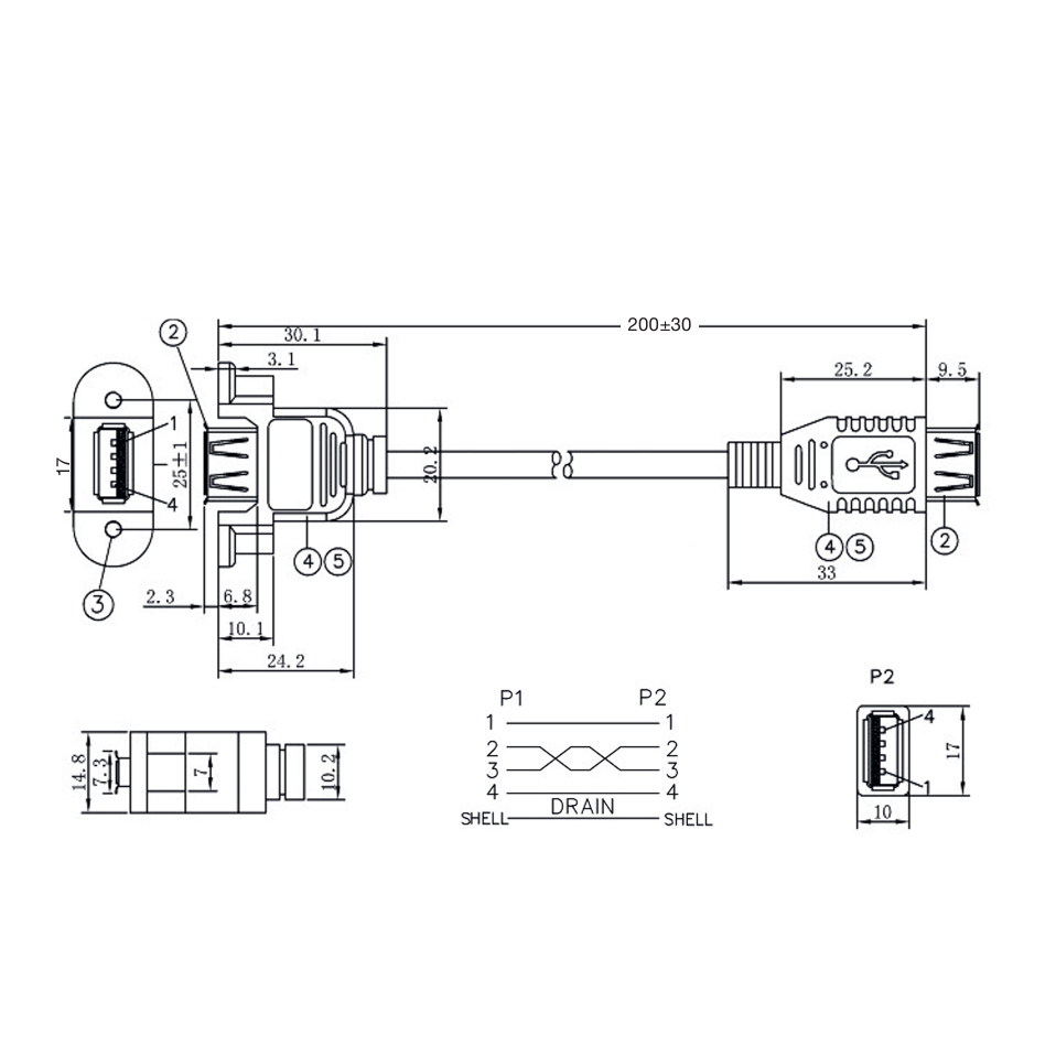 - kurzes USB 2.0 Panel Montagekabel mit anschraubbarer A-Buchse
