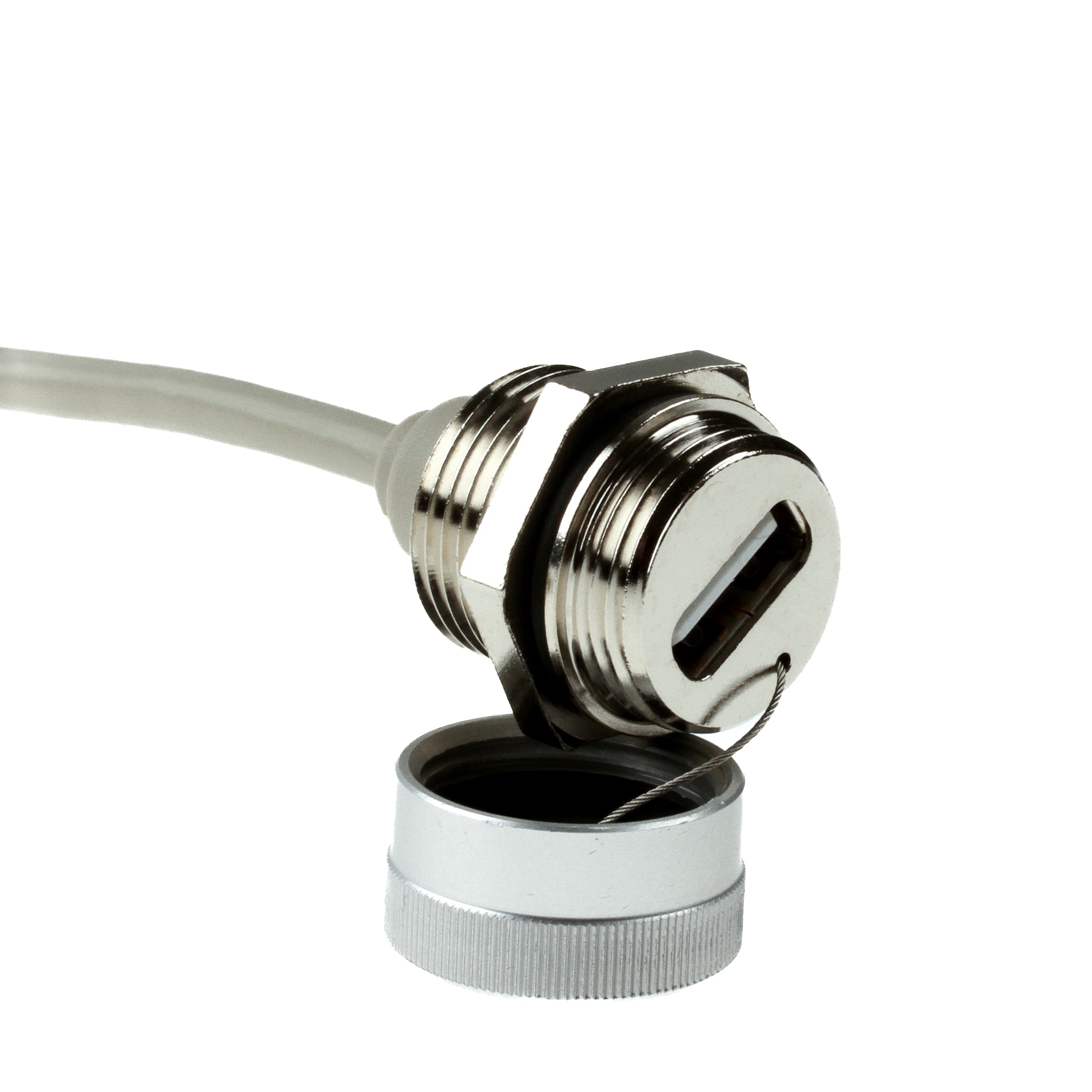 Das hier angebotene USB-Montagekabel entspricht der Schutzklasse IP67. Bei zugeschraubtem Deckel ist die montierte USB-A-Buchse gegen Staub und gegen Feuchtigkeit geschützt. Der Schutz wird durch das präzise gearbeitete, stabile Metallgehäuse und durch eine Dichtung im Schraubdeckel realisiert. Das Kürzel IP steht für International Protection (oder auch Ingress Protection genannt). Die Ziffer 6 weist auf die Staubdichtheit hin. Die Ziffer 7 bezeichnet den Schutz gegen Wasser (zeitweiliges Untertauchen in Wasser möglich).