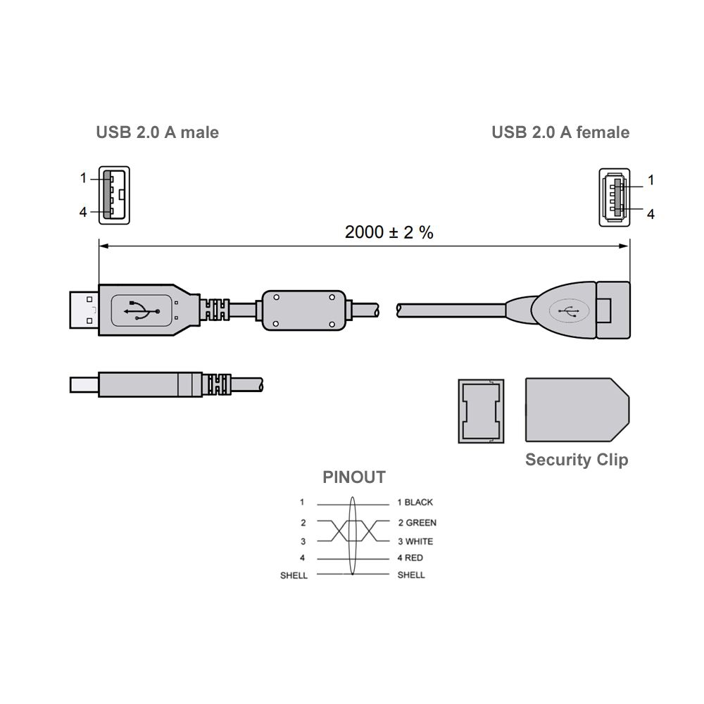 Produktinformationen "USB 2.0 Verlängerung AA mit Befestigungs-Klipp 2m"