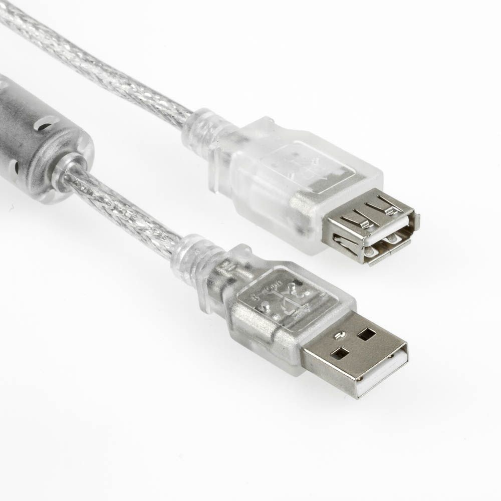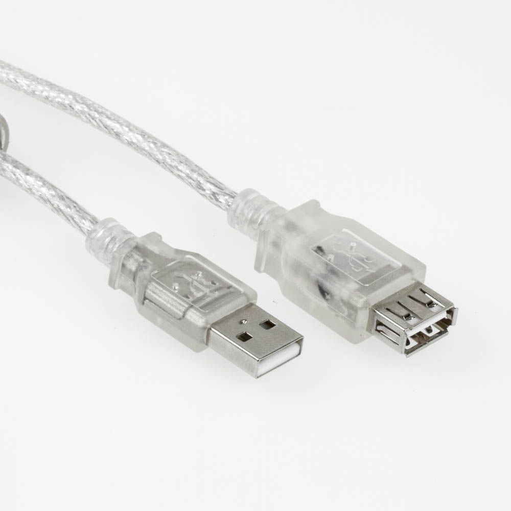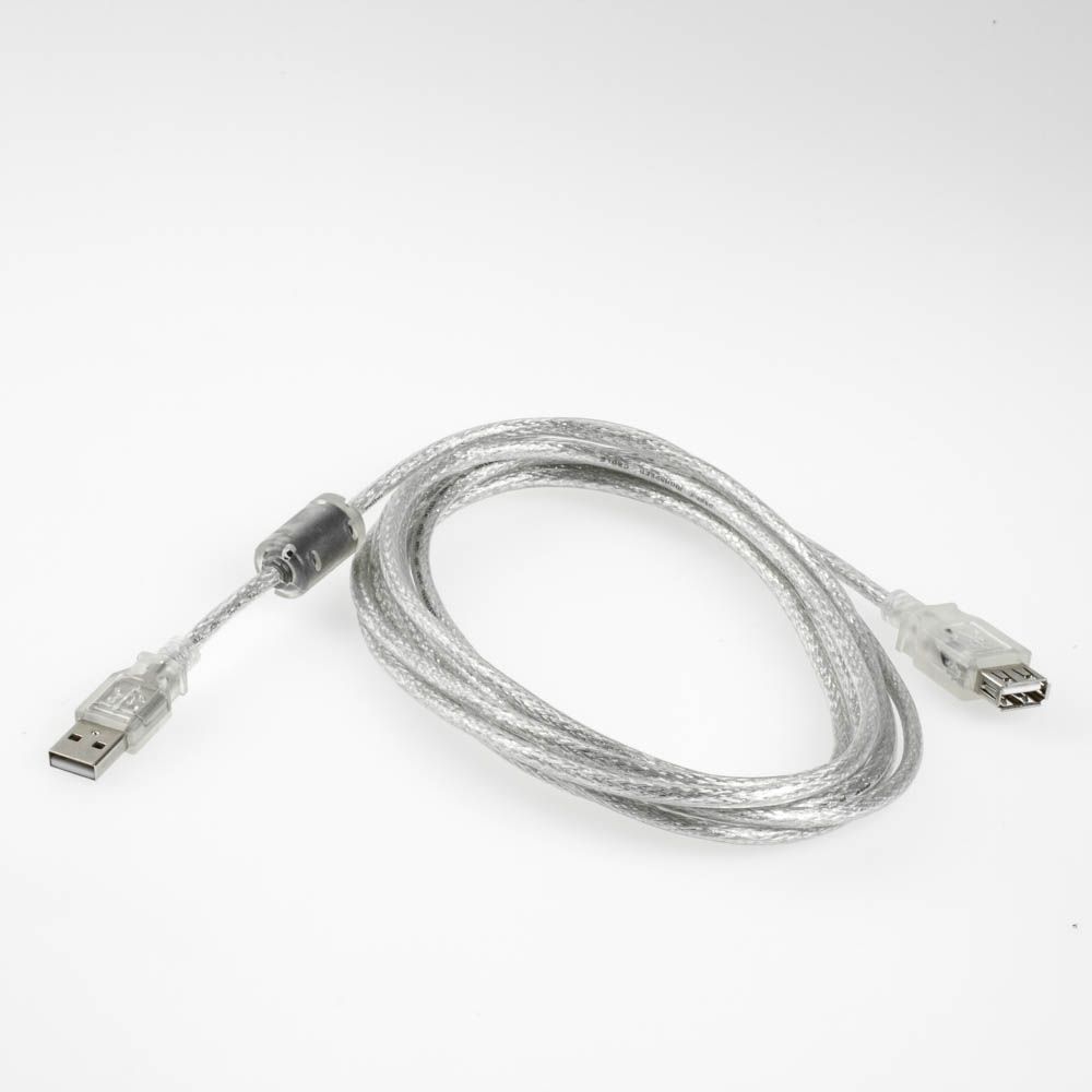 USB 2.0 Verlängerungskabel mit FERRITKERN, 3m, Typ: AA Stecker/Buchse, für USB 1.1 und USB 2.0 (bis 480 MBit/s), Farbe: transparent-silber