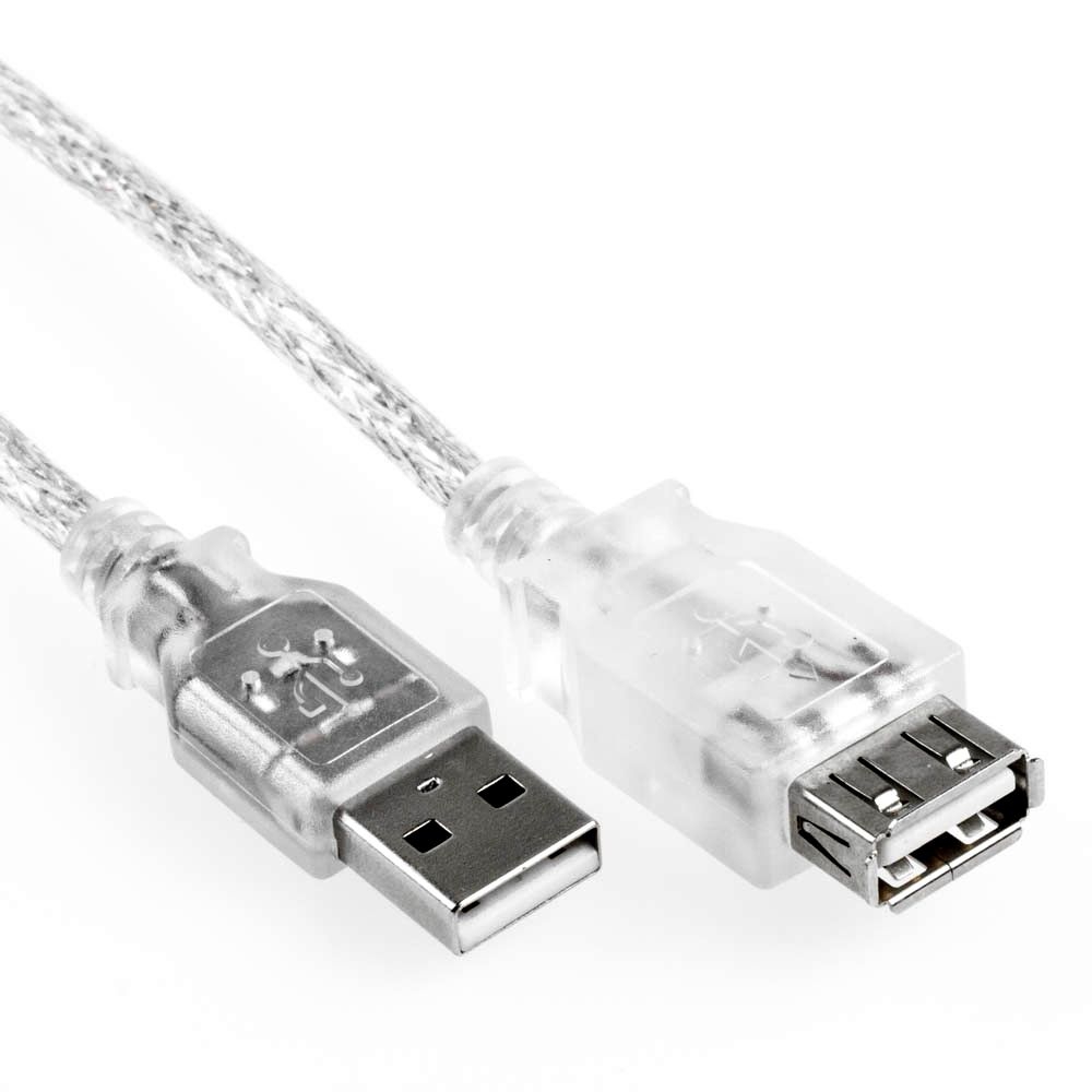USB-Verlängerungskabel, 2m, USB-A-Stecker an USB-A-Buchse, für USB 1.1 und USB 2.0 (bis 480 MBit/s), Farbe: transparent-silber