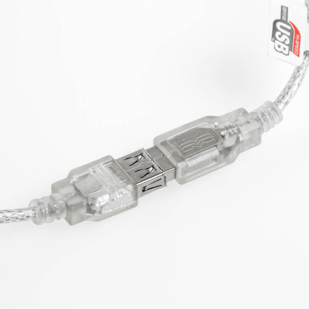 USB-Verlängerungskabel, 5m, USB-A-Stecker an USB-A-Buchse, für USB 1.1 und USB 2.0 (bis 480 MBit/s), Farbe: transparent-silber