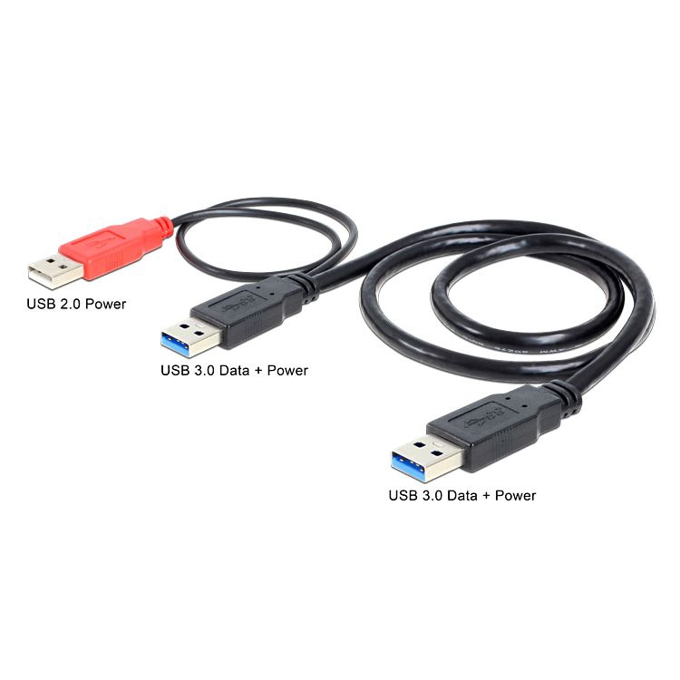 USB-2.0-Ports stellen i.d.R. max. 500mA zur Verfügung. Wenn Sie bei USB 2.0 den roten Stecker einstecken und den schwarzen bei USB 3.0 haben Sie gesamt 900mA + 500mA. Bei reiner USB-2.0-Nuzung sind es gesamt 1A (500mA+500mA). Auch die reine USB-2.0-Nutzung des Y-Kabels ist möglich. Das Kabel ist abwärtskompatibel.