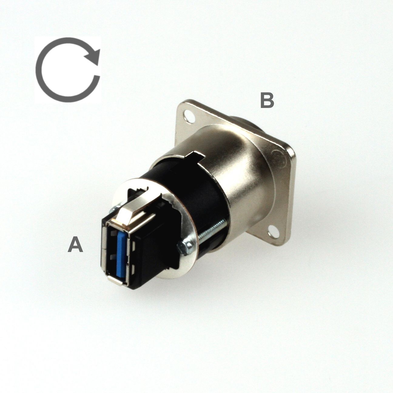 USB 3.0 Einbauadapter von NEUTRIK, D-Gehäuse Metall, silber