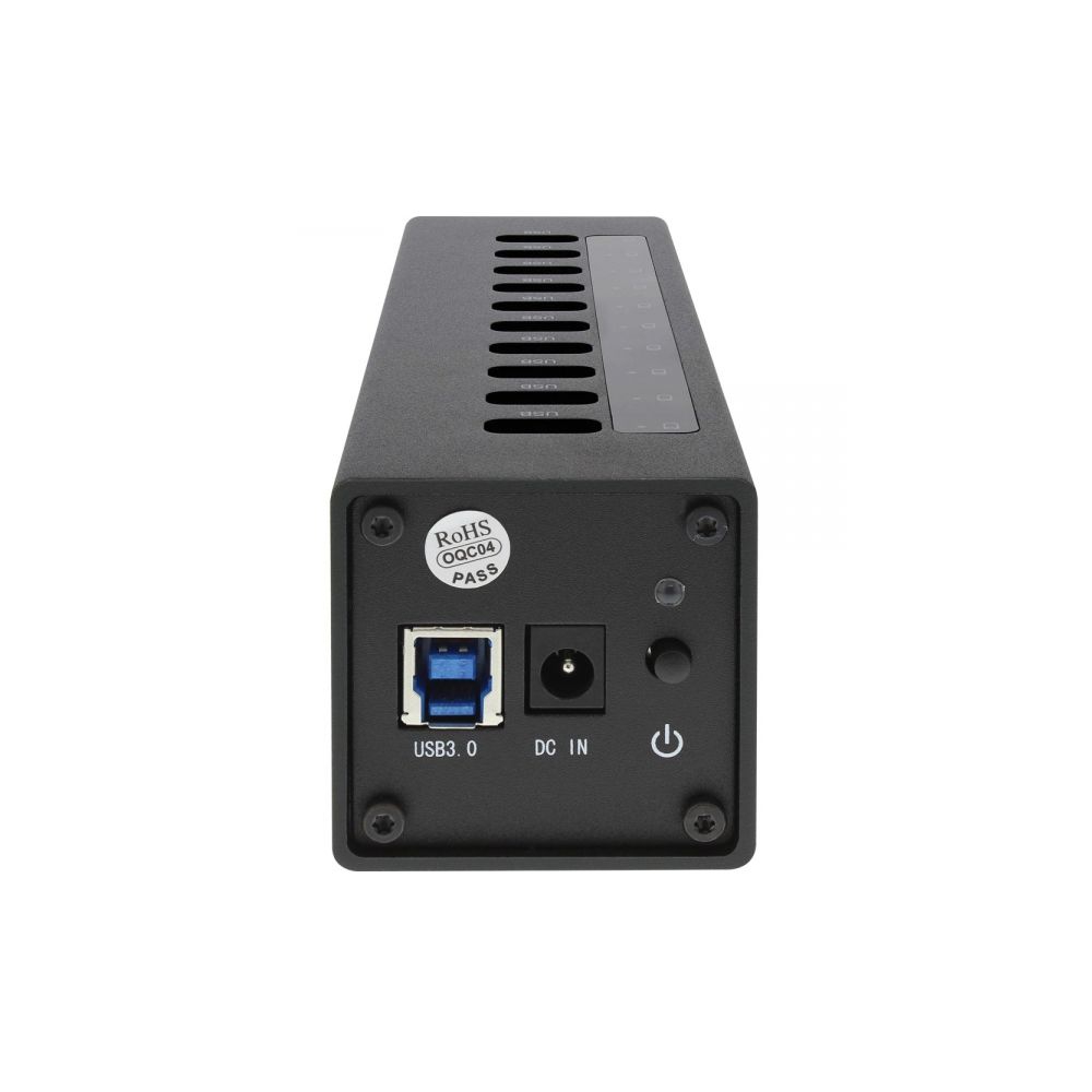 10 Port USB 3.0 HUB im Metall-Gehäuse (ALU), 10x A-Buchse + 1x B-Buchse, inkl. USB 3.0 Kabel und ext. Netzteil 4A