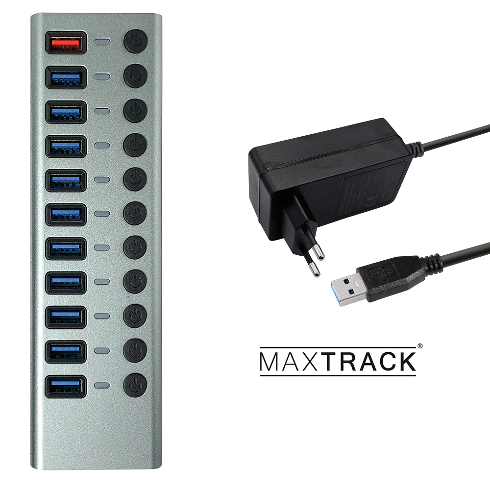 11 Port USB 3.0 HUB im Metall-Gehäuse, 10x USB-Buchse + 1x Ladebuchse, Ports einzeln zuschaltbar, inkl. 1m USB-Kabel und 4A Netzteil