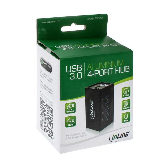 4 Port USB 3.0 HUB im Metall-Gehäuse (ALU), 4x A-Buchse + 1x B-Buchse, inkl. USB 3.0 Kabel und ext. Netzteil 2.5A (alte Art.-Nr. A-USB3-75-I)