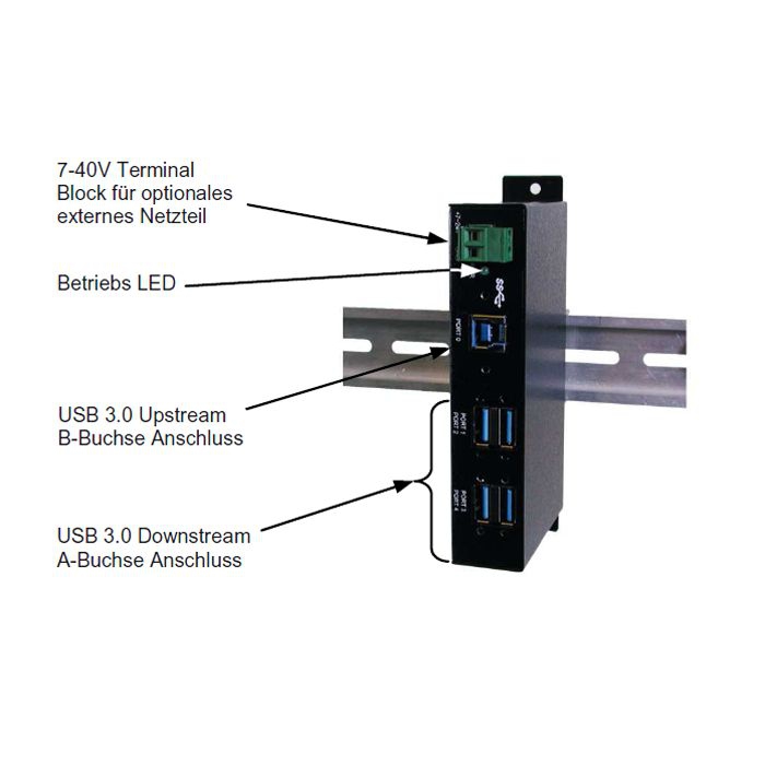 Produktinformationen "USB 3.0 HUB mit 4 Ports als DIN-RAIL-Version im Metall-Gehäuse, EX-1185HMVS-2"