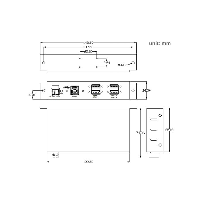 USB 3.0 HUB mit 4 Ports als DIN-RAIL-Version im Metall-Gehäuse, EX-1185HMVS-2