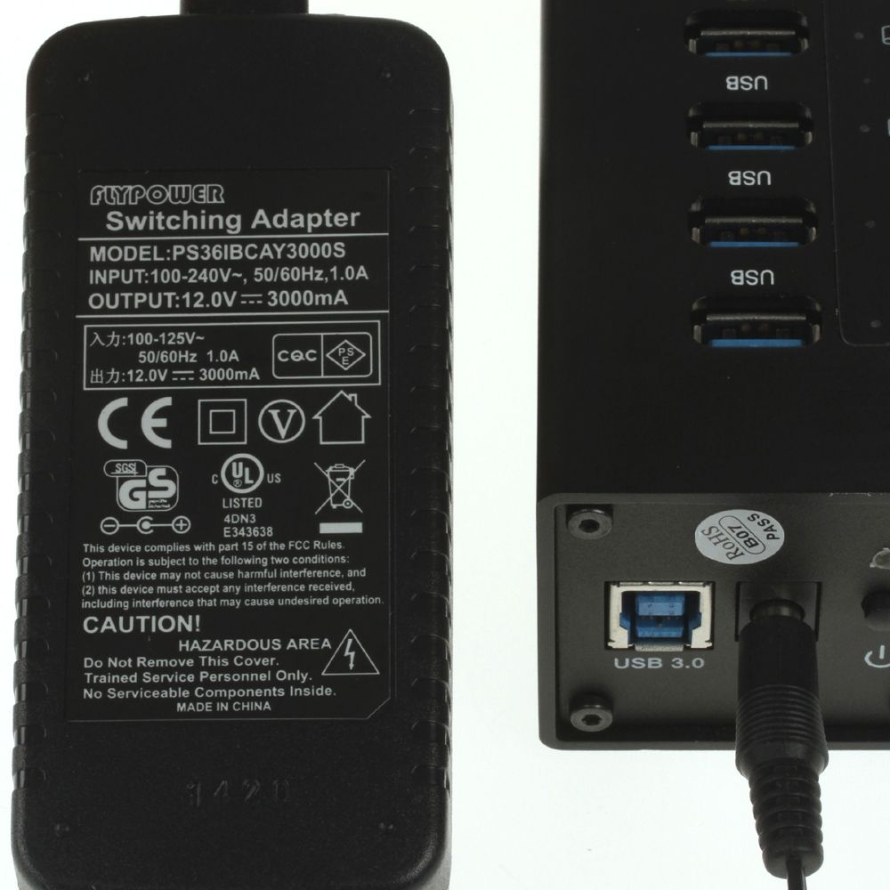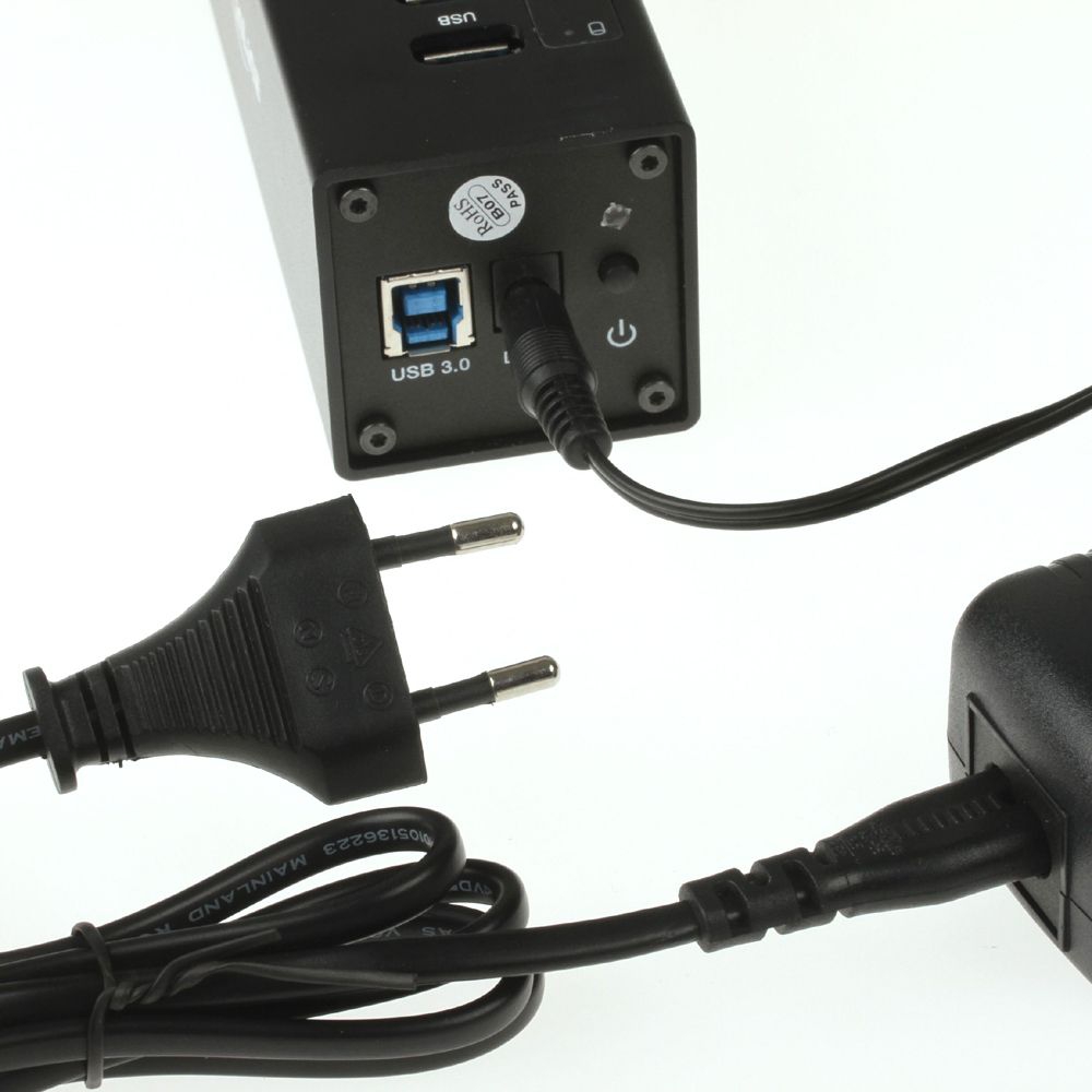 Hinweis: Bitte beachten Sie, dass dieser USB3-HUB ein 12V-Netzteil verwendet. Hubs anderer Hersteller arbeiten i.d.R. mit 5V-Netzteil.