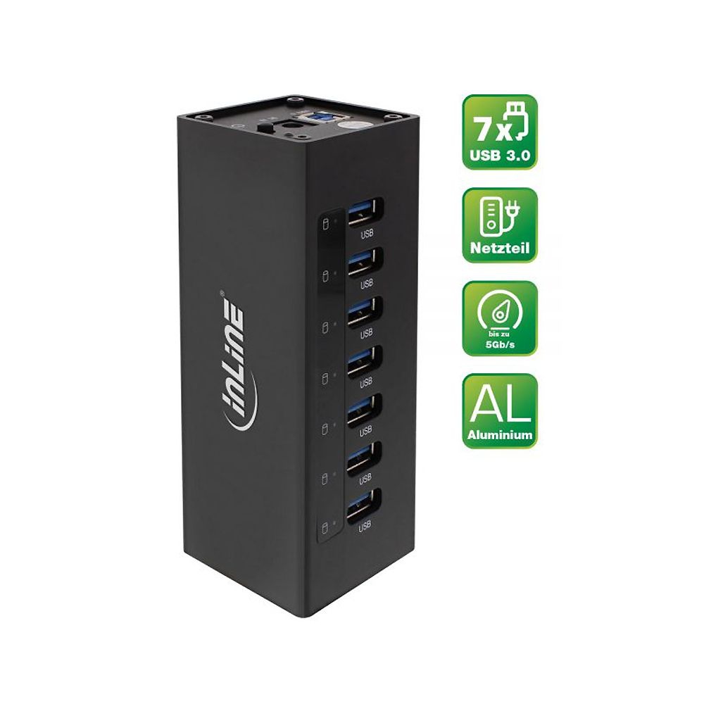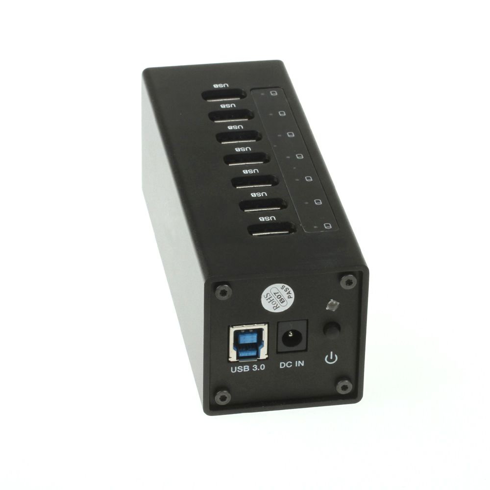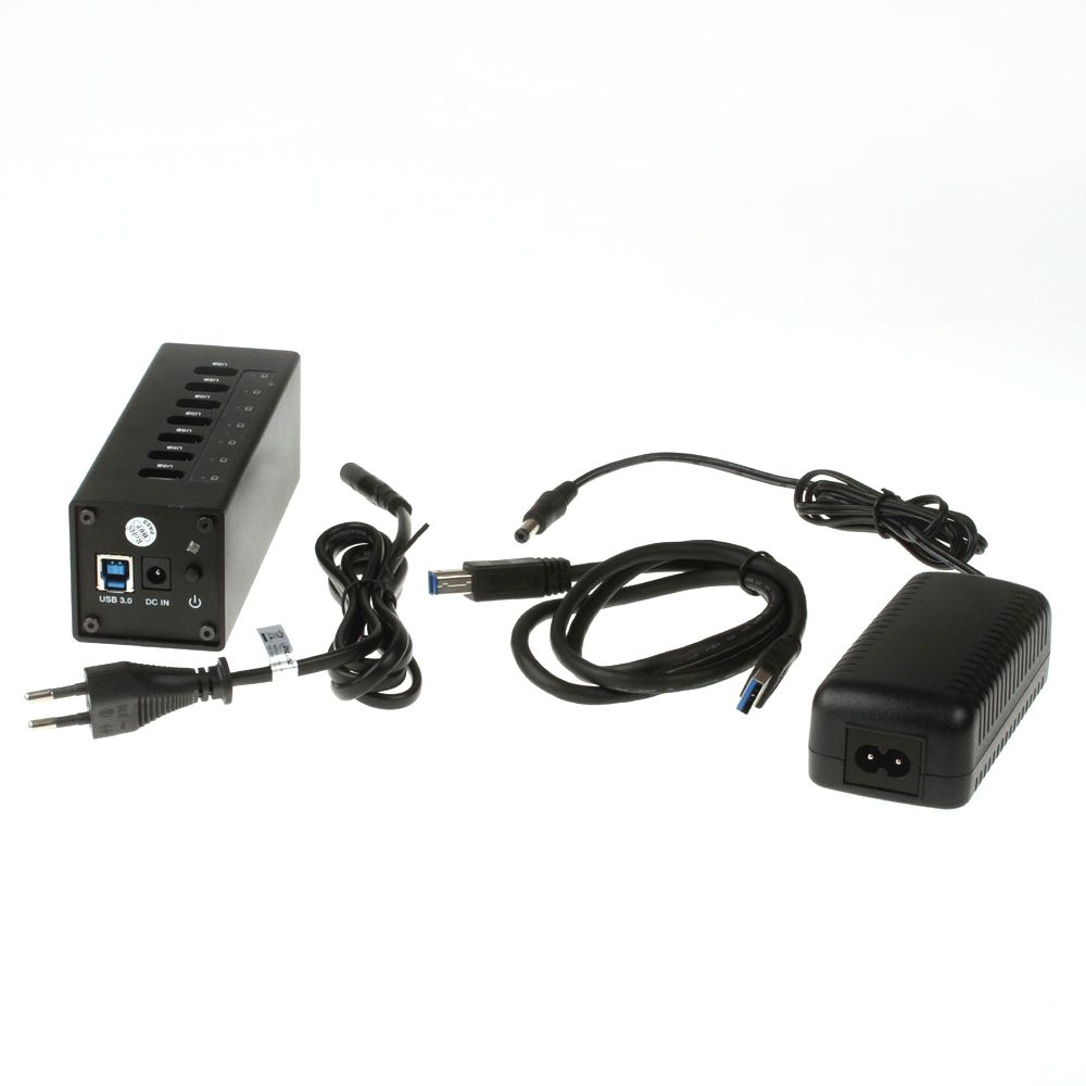 7 Port USB 3.0 HUB im Metall-Gehäuse (ALU), 7x A-Buchse + 1x B-Buchse, inkl. USB 3.0 Kabel und ext. Netzteil 3A
