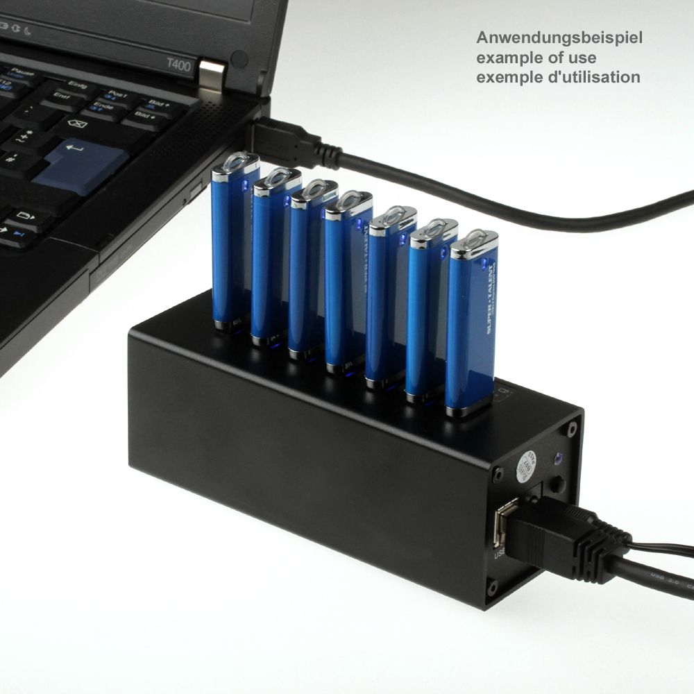 Der HUB ist ideal, um 7 USB-Sticks gleichzeitig zu bespielen. Die 7 Ports liegen so weit auseinander (8mm), dass die meisten Sticks genügend Platz haben und sich nicht gegenseitig behindern. Bei vielen anderen 7 Port HUBs können Sie nur 4 Sticks gleichzeitig einstecken. Zudem ist der HUB geeignet für USB3-HDDs, hochauflösende Kameras, Scanner, Mehrkanal-Audio, USB 3.0 Kartenleser, digitale Videokameras oder Videoüberwachung.