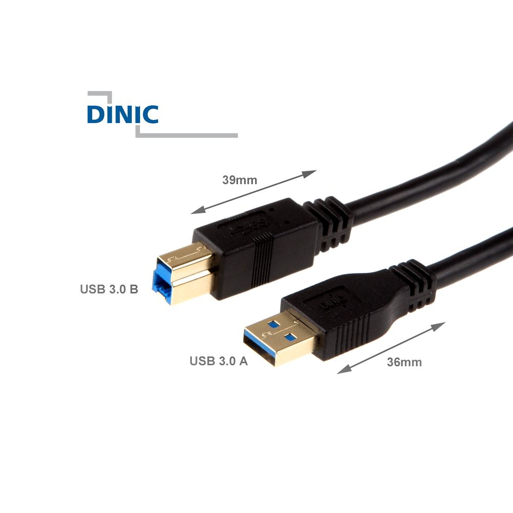 USB 3.0 Kabel, 3m, PREMIUM-Qualität, vergoldete Stecker, AWG24/28, doppelt geschirmt, Super-Speed-Modus (max. 5Gbps), USB3-A-Stecker an USB3-B-Stecker, Farbe: schwarz