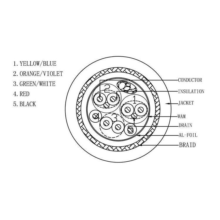 - 2 Paare AWG28 (Adernfarben: gelb + blau und orange + violett)